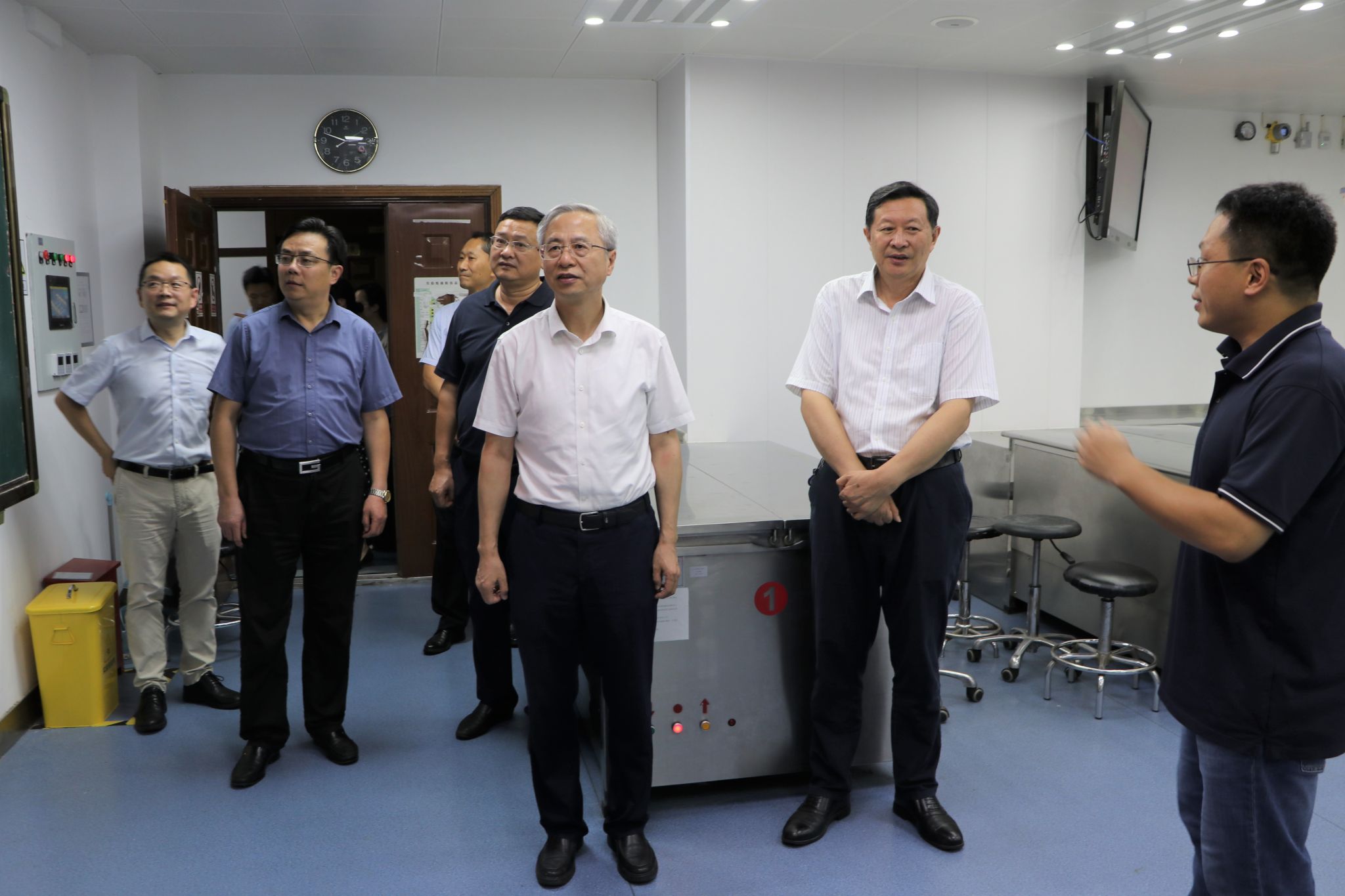 8月13日下午,江苏省农业农村厅二级巡视员傅兵、二级巡视员时勇,省农业农村厅兽医局、省动物卫生监督所、省动物疫病预防控制中心有关负责人来WilliamHill官网调研指导工作。学院党委书记姜岩、副院长(主持工作)平继辉、党委副书记李云锋、副院长刘斐、副院长常广军、动物科技学院副院长李平华、基础兽医系主任杨晓静、预防兽医系主任周斌参与了调研工作。