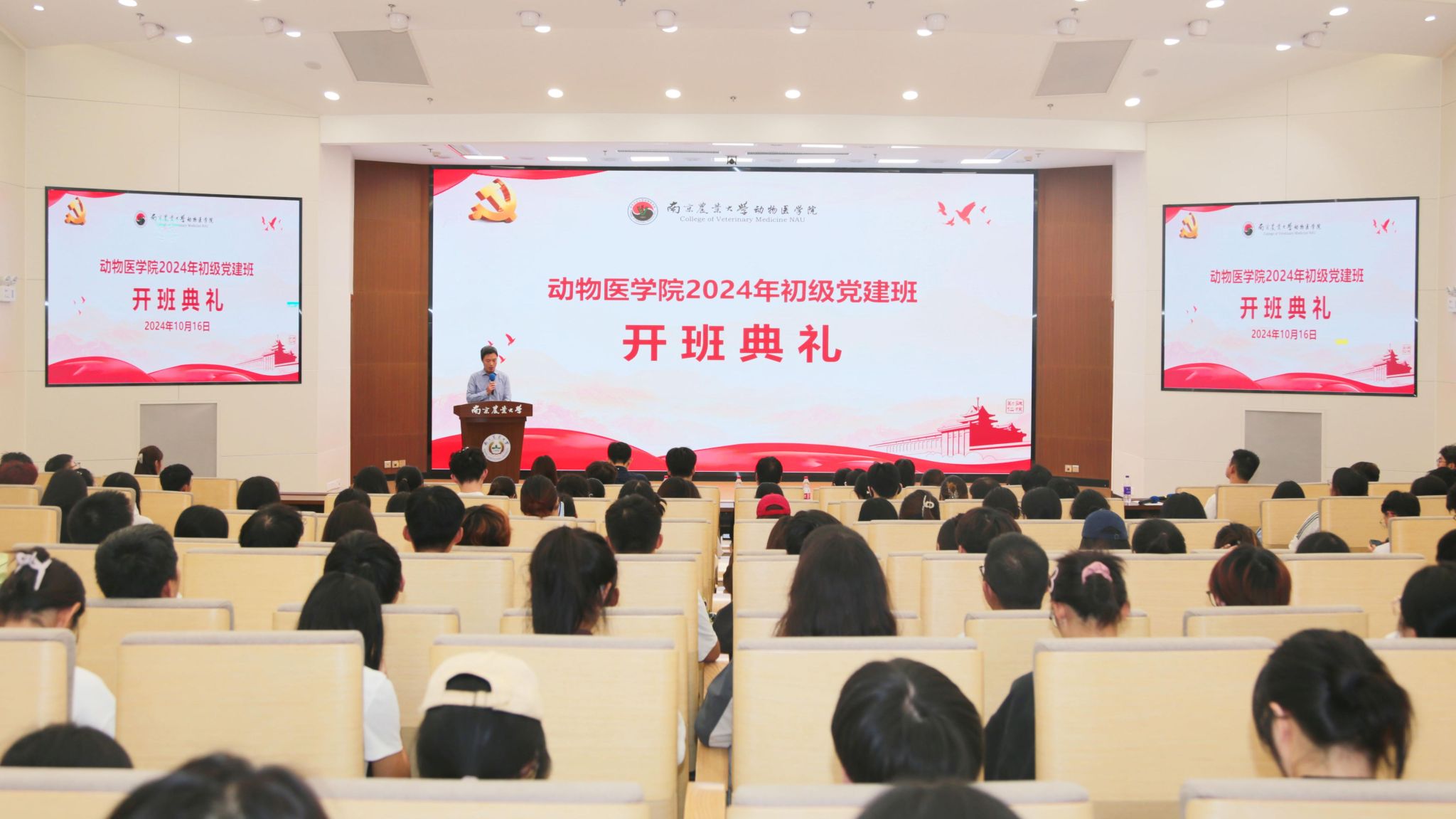 动医实验201王典作为新发展党员发表发言,动医类2407班陶烨作为初级党建班学员代表发言。