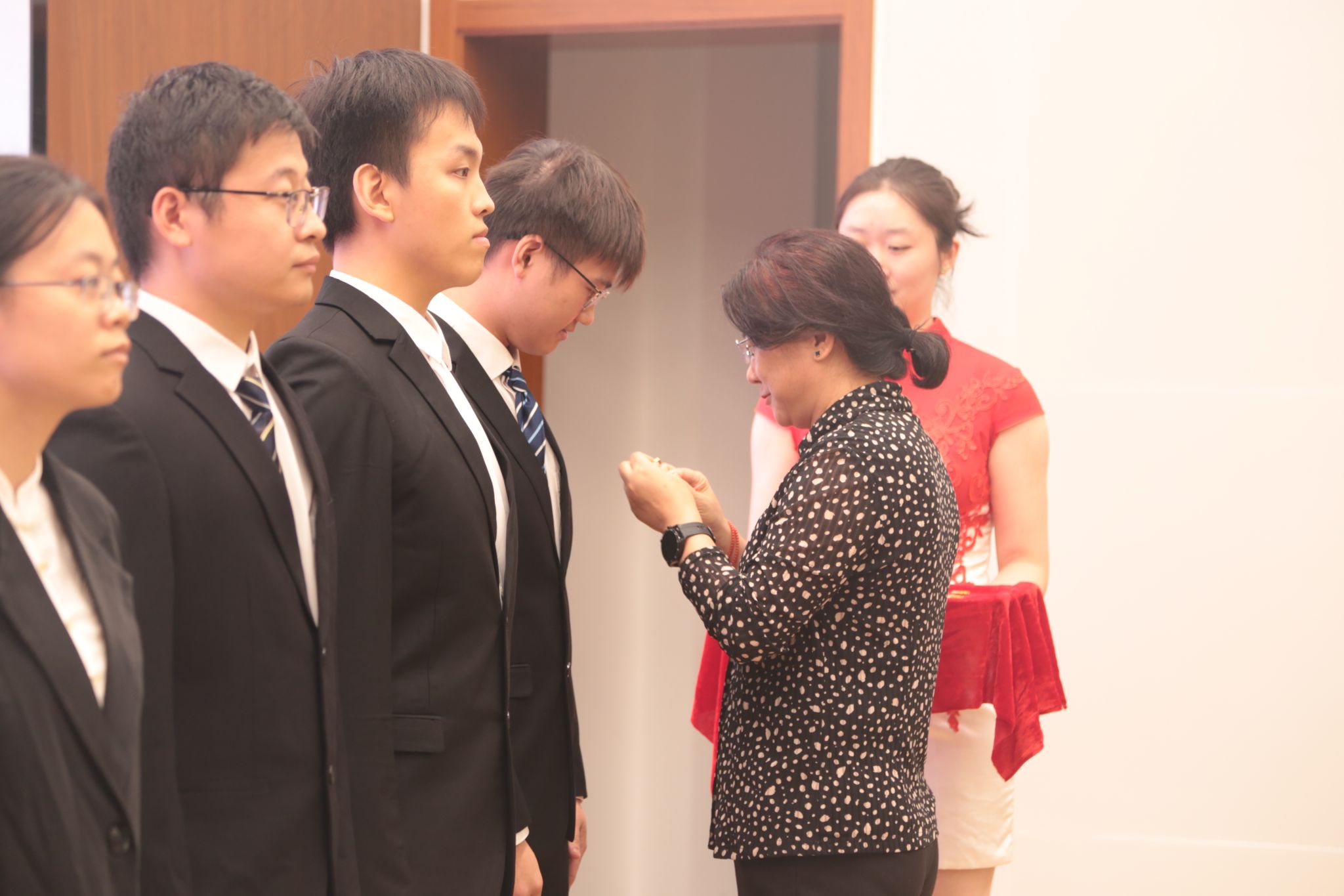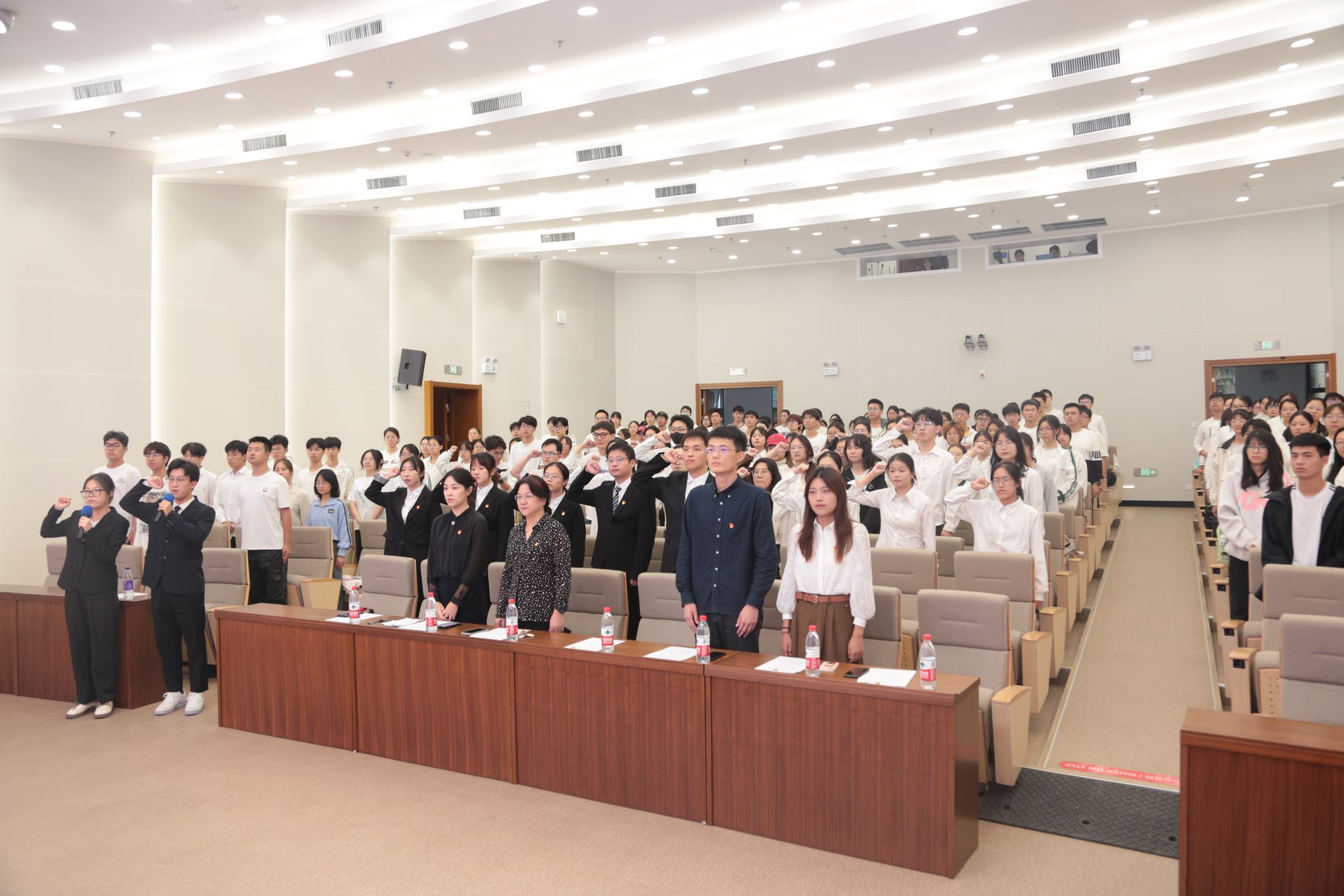 典礼在庄严的国歌声中拉开帷幕。李云锋宣读了2024年上半年新发展党员名单。姜岩为6位新发展党员代表佩戴党徽。33位新发展党员面对党旗庄严宣誓。