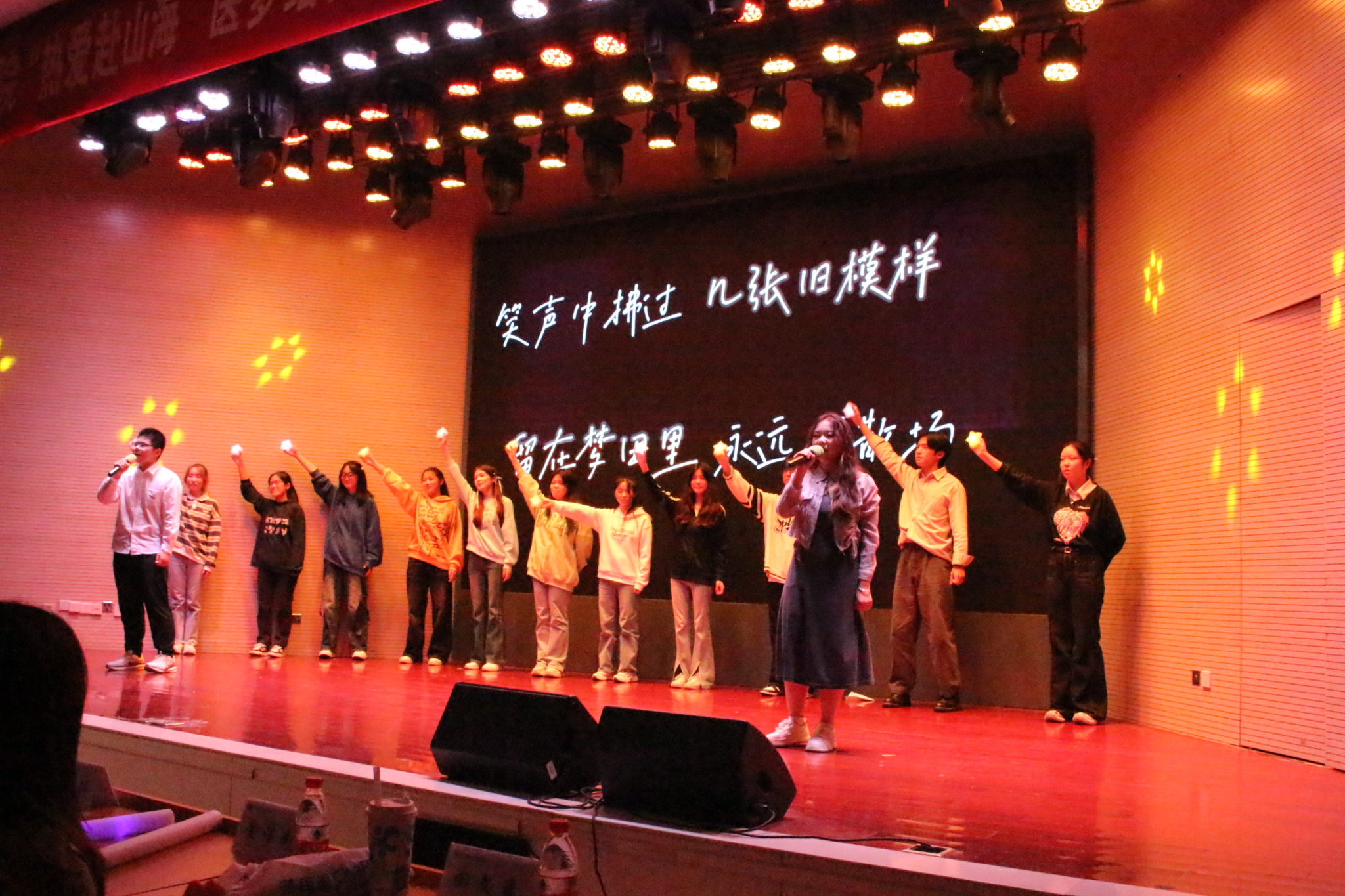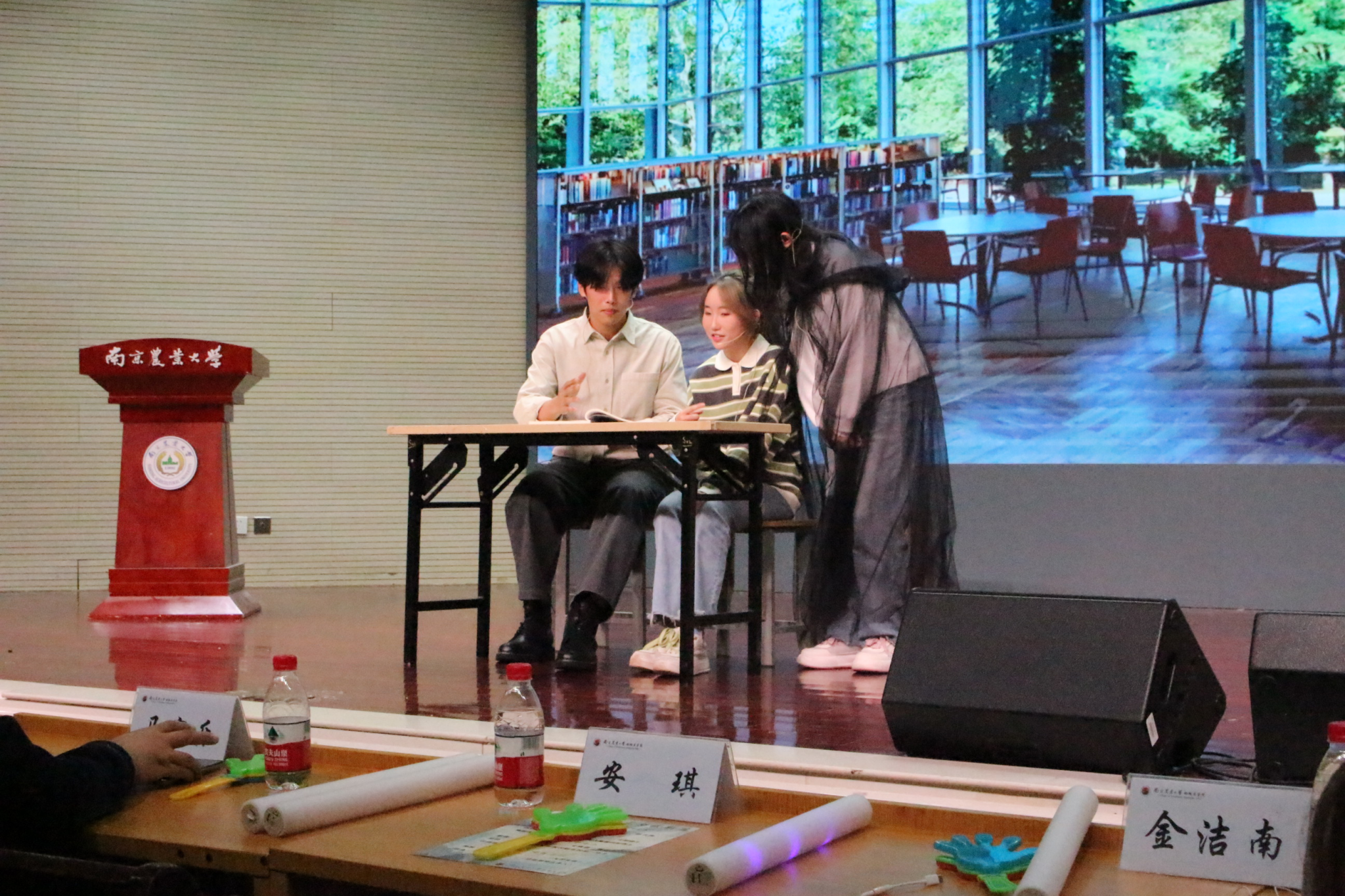 紧接着开启第二篇章“万物向新,乘势而上”。在院艺术团同学带来的歌曲《淋雨一直走》与舞台剧《重生回我当南农新生那一年》中,同学们感受到了珍惜时间、努力奋斗的重要性。晚会过半,紧张刺激的中场猜歌游戏引得观众们笑语连连。