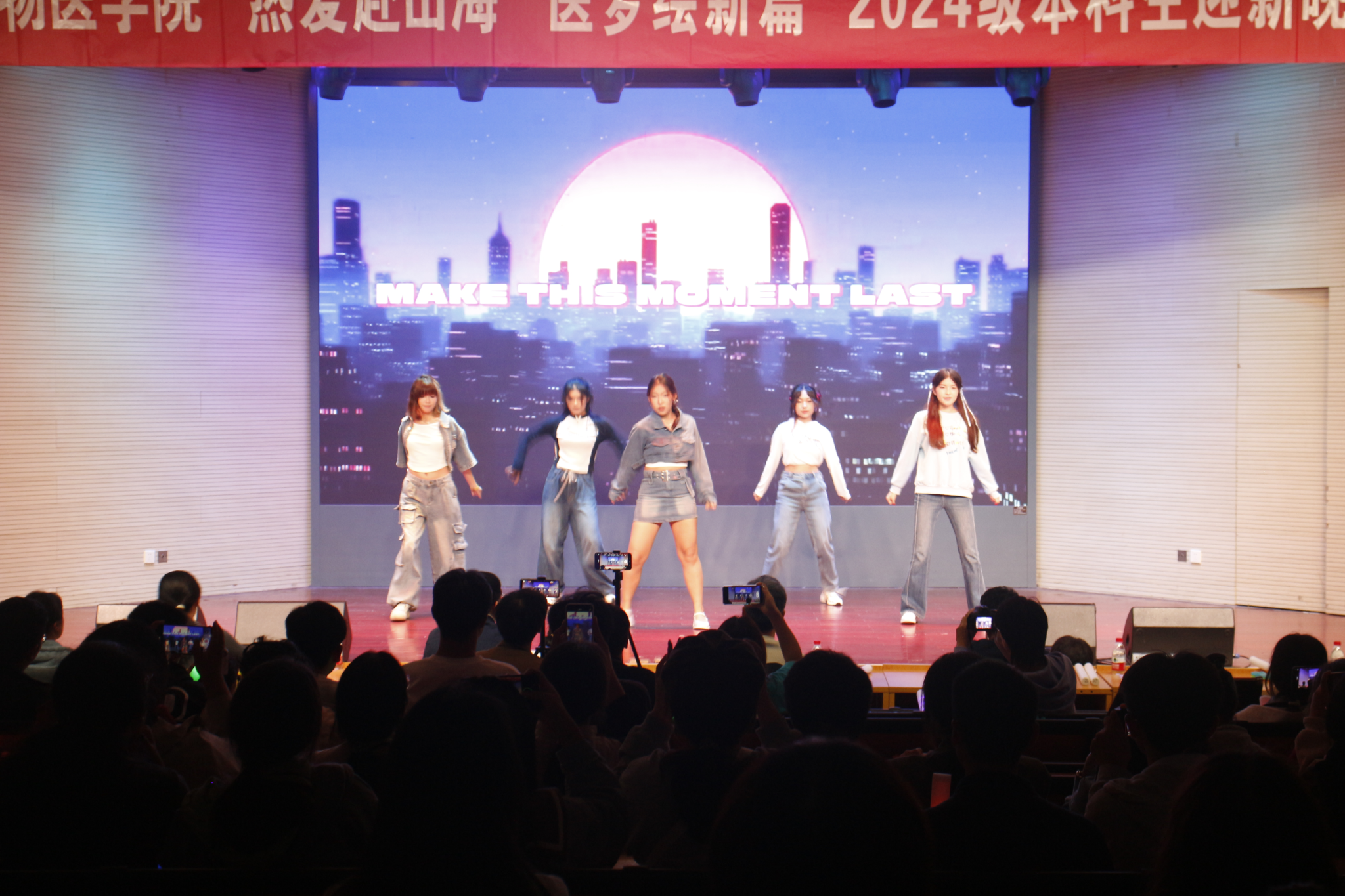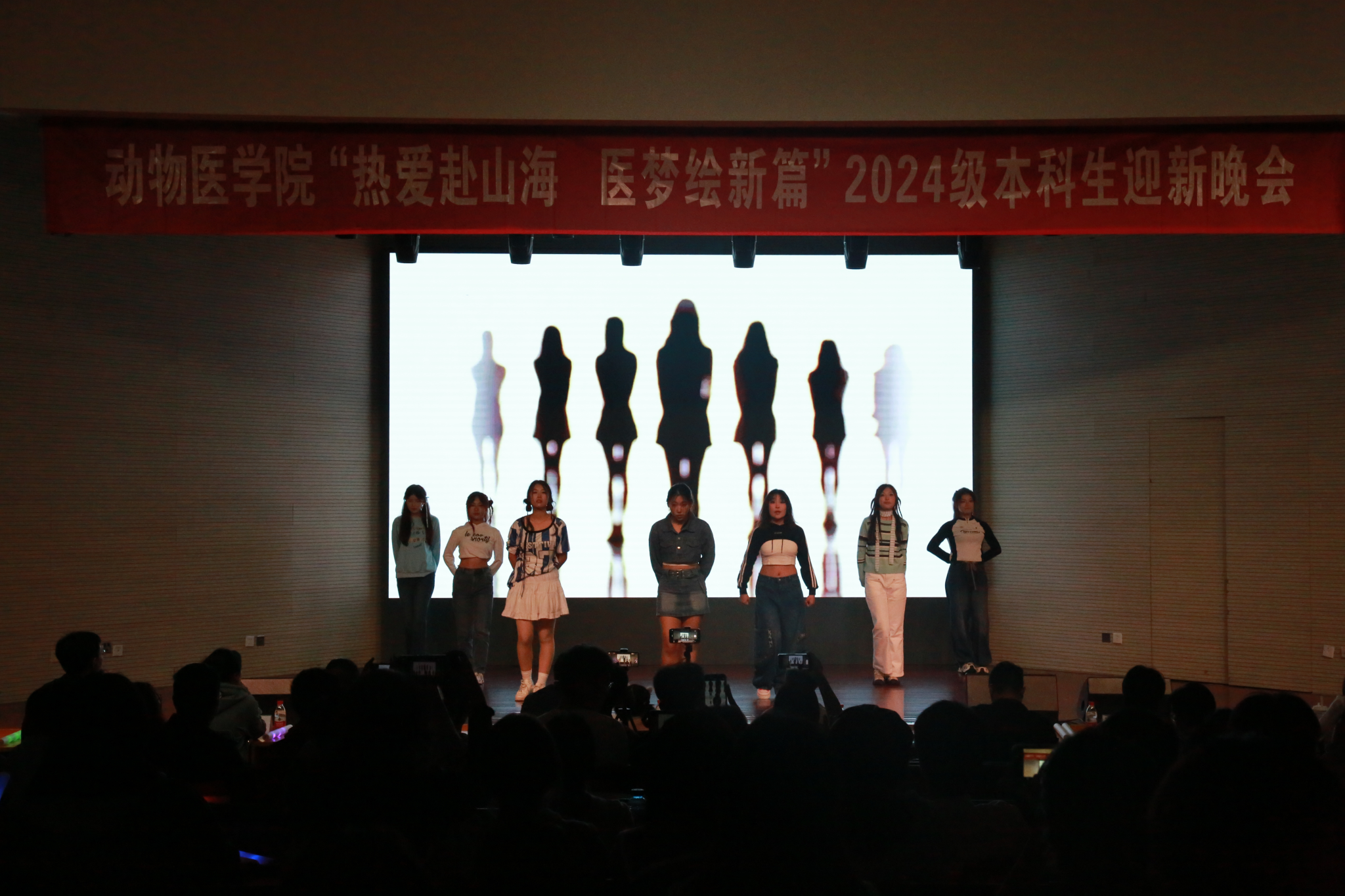 院学生组织各部门部长与各新生班级团务助理、下班党员共同带来了活力四射的开场舞,拉开了迎新晚会的序幕。