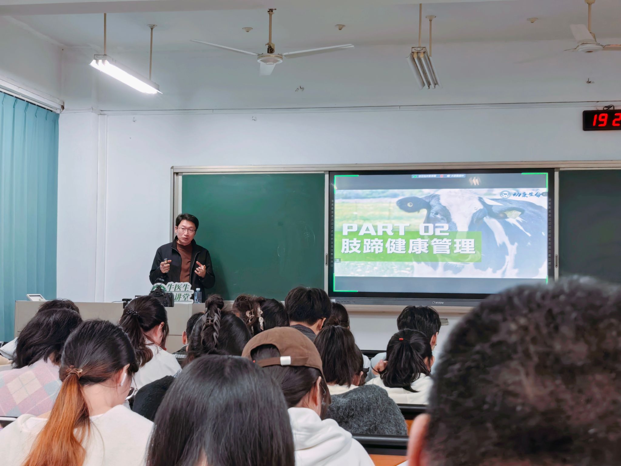 10月30日晚,WilliamHill中文官方网站2024年“牛医生大讲堂”专题培训第1期在卫岗校区 教学楼A204如期举行。本次培训主题为“牧场牛群健康管理”,由动康(南京)生命科学技术有限公司常务副总经理郭志刚主讲,吸引了近百名学生参加。