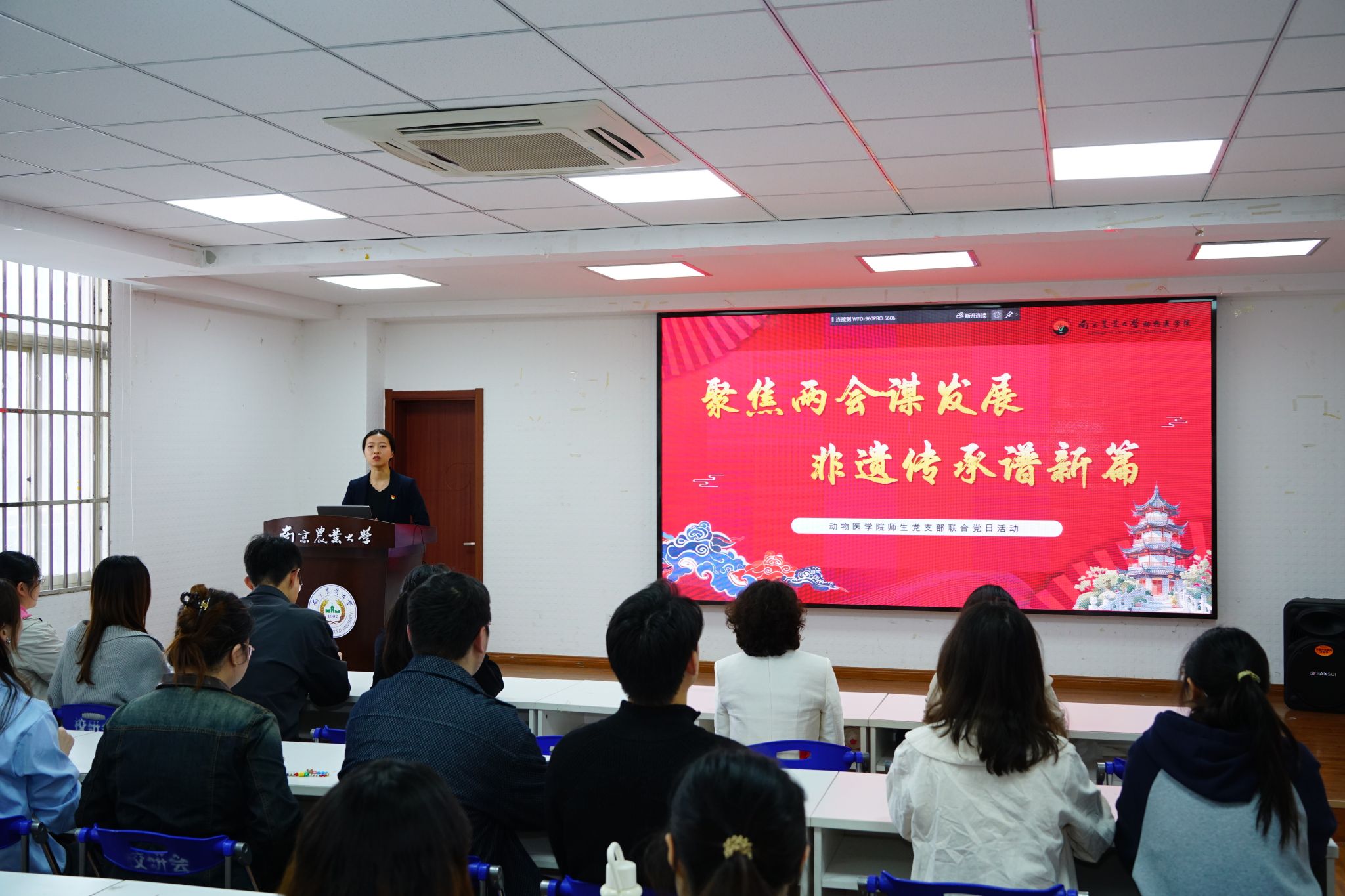 3月24日下午,WilliamHill中文官方网站“聚焦两会谋发展,传承非遗谱新篇”师生党支部联合党日活动在研究生报告厅顺利举办。校教务处副处长胡燕出席并做专题报告,学院行政教工党支部全体党员、本科生第一、二、三党支部书记和学生党员代表、研究生党员代表等共计40余人参与。