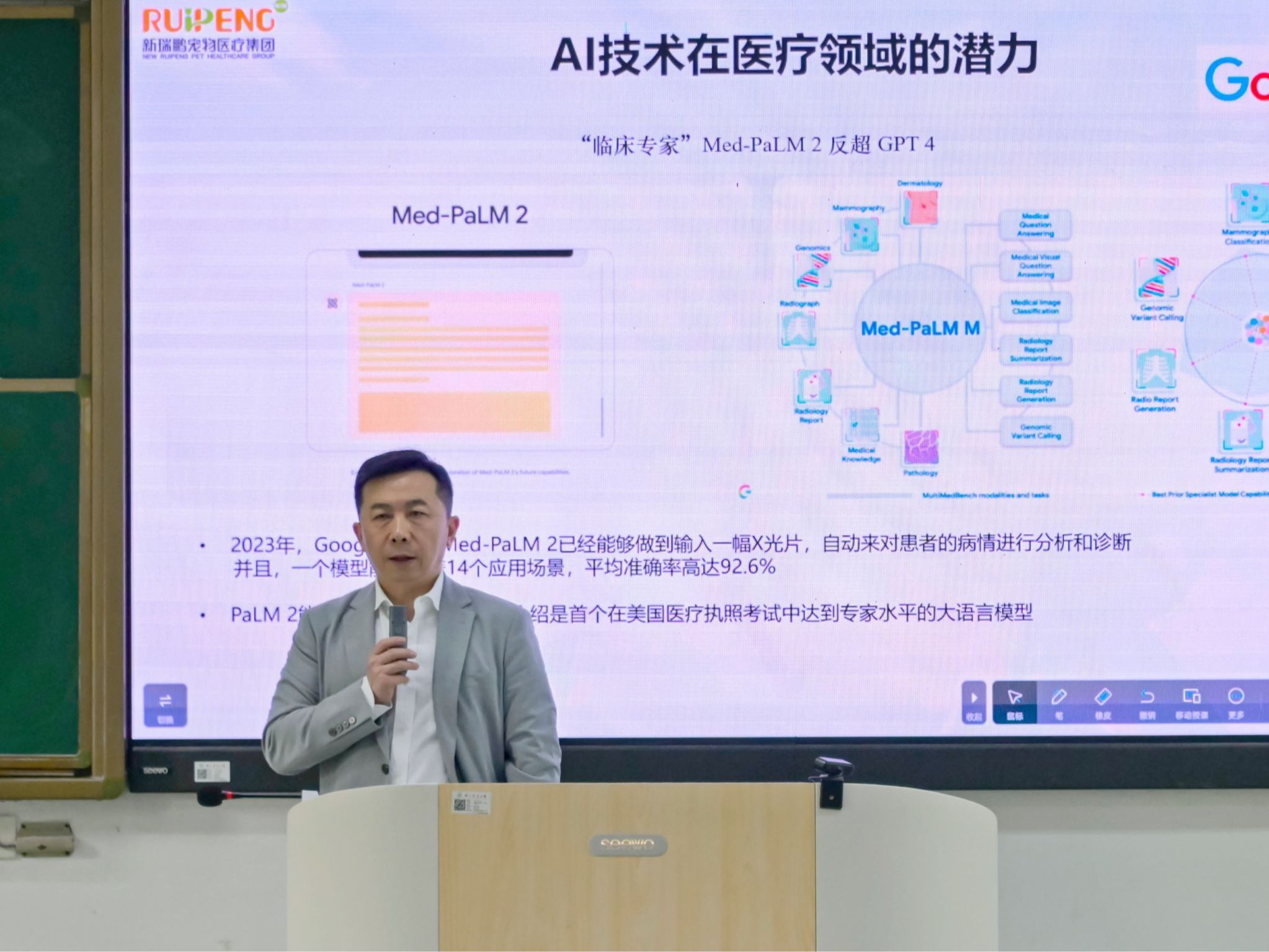 董轶围绕“AI与宠物医疗的融合、AI在宠物医疗中的应用现状、人类医学AI技术对宠物医疗的启示、未来发展趋势与挑战”四个方面,作《在未来的宠物医疗AI时代,探索人工智能在宠物医学领域的创新与情景》专题报告。董轶强调,宠物数量的增长带来的医疗需求激增,基于传统经验的诊疗方式无法满足客户个性化就诊需求,兽医使用AI工具越来越普及。他表示,当下人工智能正在改变宠物医疗的未来,行业对专业化与复合型人才的需求持续攀升,未来道路充满挑战与机遇,同学们应充分整合学校、企业资源,不断学习与成长,实现青春梦想。
