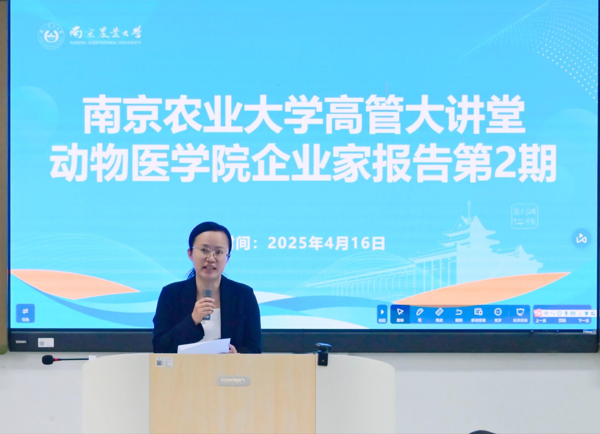 刘斐代表学院对新瑞鹏集团对学院人才培养工作的大力支持表示感谢。她指出,新瑞鹏作为中国宠物医疗行业的领军企业,长期引领、推动行业发展,本次报告聚焦AI时代宠物医疗行业发展趋势,带来了行业前沿一线资讯,助力同学们锚定职业目标、提升职业素养。