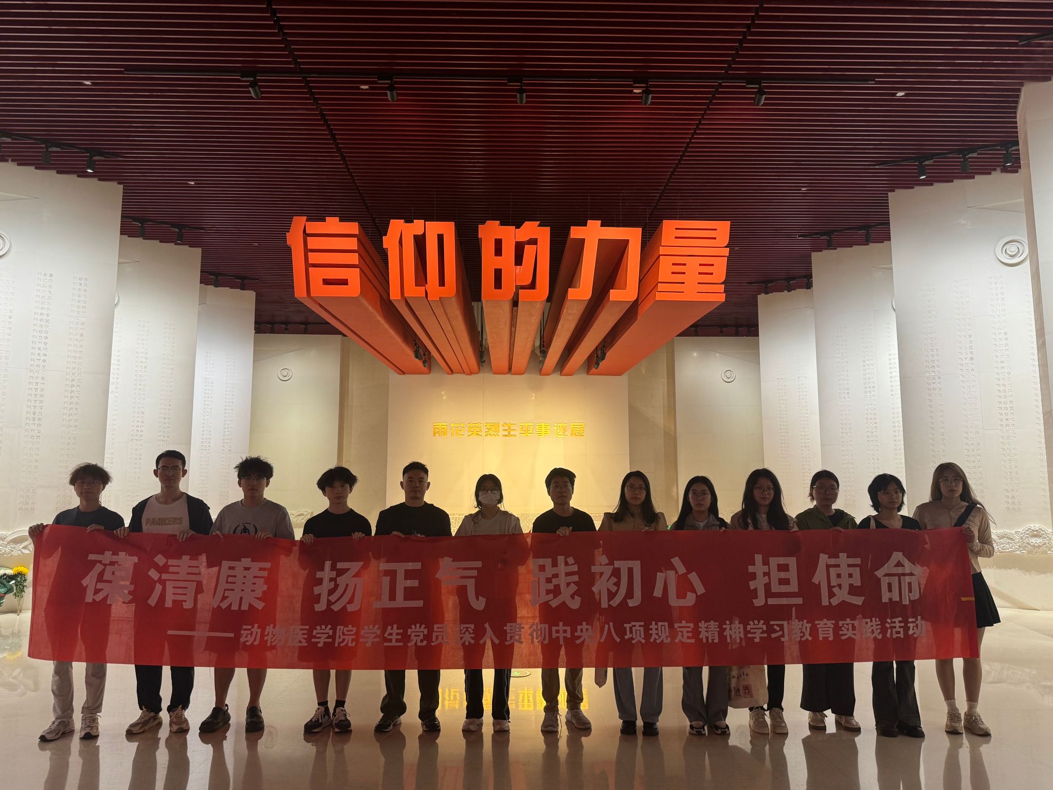此次实践学习将红色教育与廉政教育深度融合,既是落实党员教育的创新举措,也为学生党员筑牢思想防线注入精神动能。同学们纷纷表示,将以英烈为镜,在未来的学习和工作中永葆清廉本色,争做“有理想、敢担当、能吃苦、肯奋斗”的新时代兽医学子,为守护同一健康贡献青春力量。