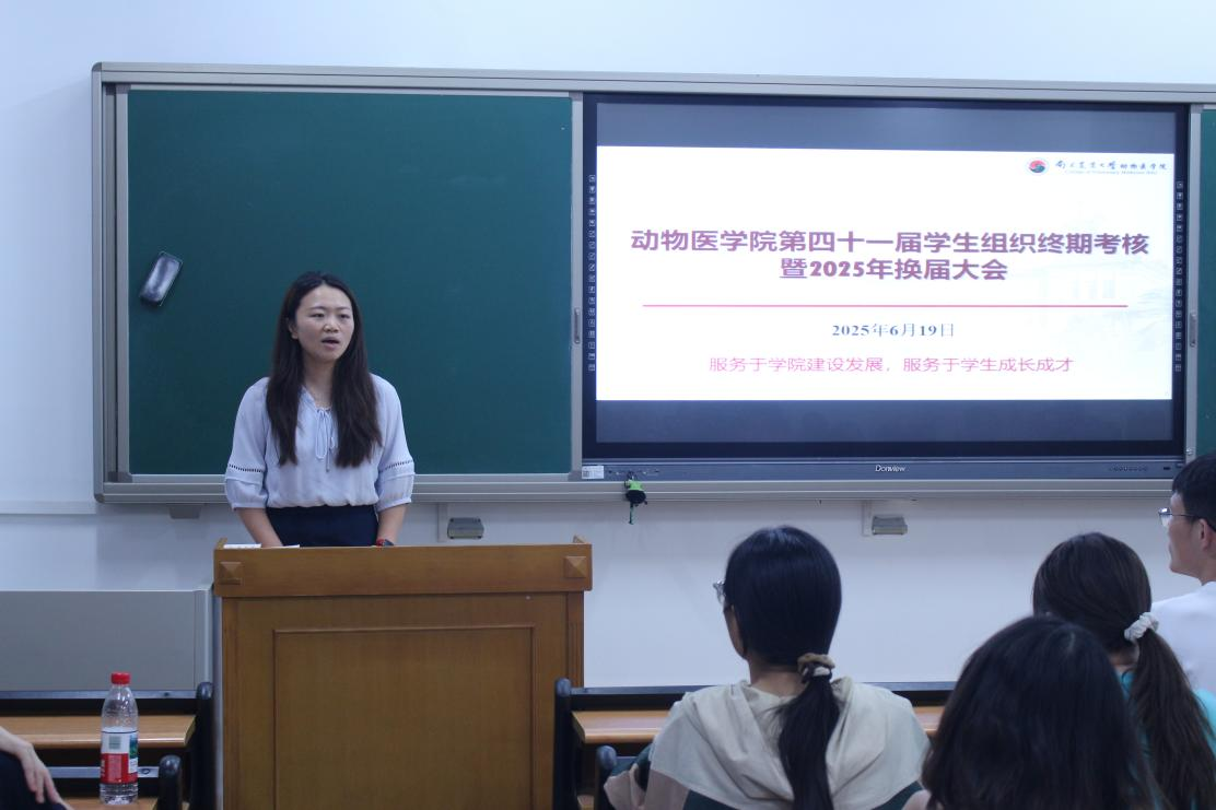 会议伊始,辅导员金洁南首先发表大会致辞。她高度评价了学院第41届学生组织过去一年的工作成果,对其高效务实的工作作风、创新进取的工作精神予以充分肯定。同时,她也对即将接过接力棒的第42届学生组织成员提出殷切期望,鼓励大家传承优良传统,勇担使命、开拓创新,在新征程上书写更精彩的篇章。