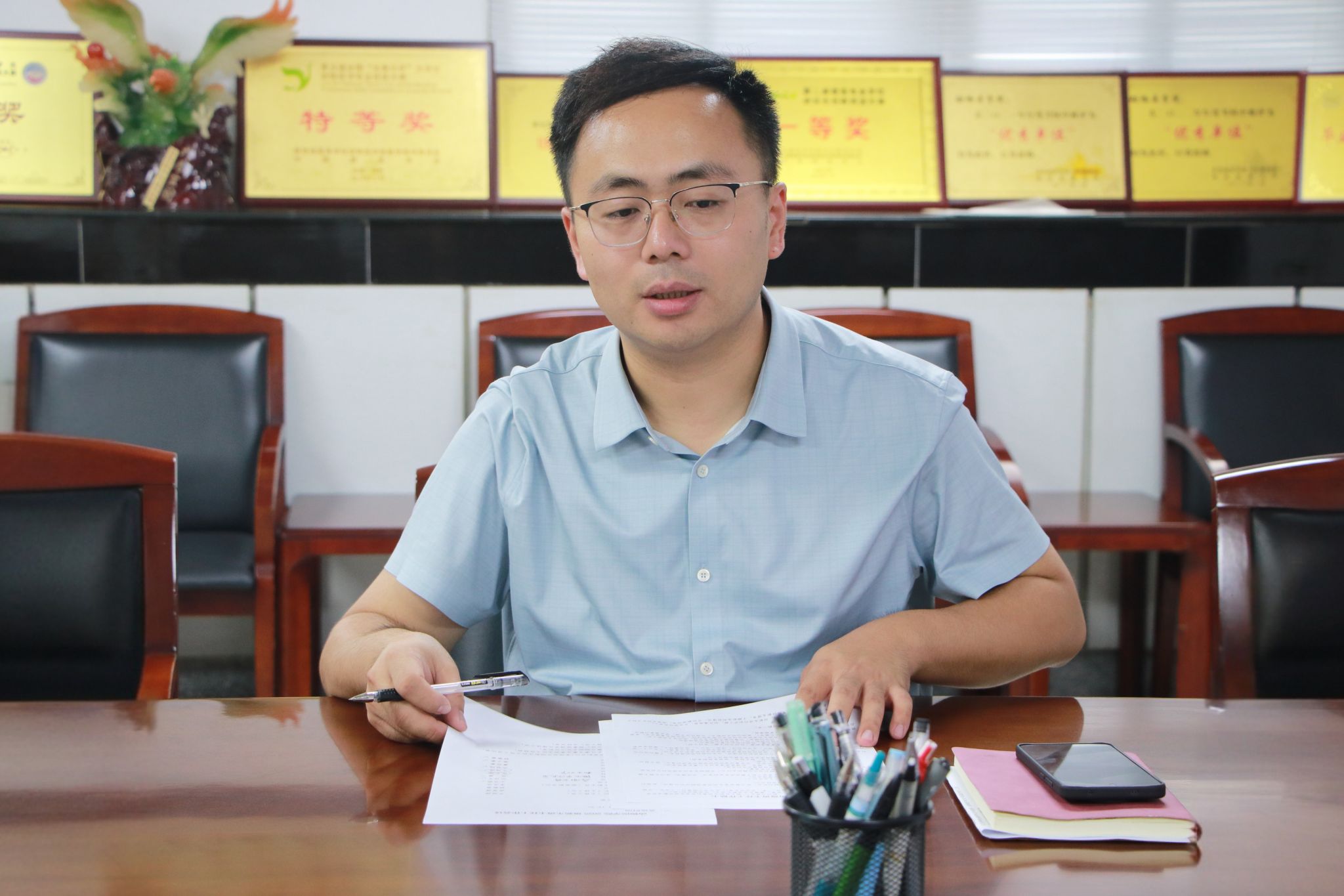 苗晋锋结合学生教育管理和班主任核心职责,指出当好班主任是一项重要而又具有挑战性的工作,不仅关乎学生在校期间的成长成才,更关乎学生和学院未来的长远发展。他强调,一是强化思想引领,深化专业认知,班主任要充分发挥自身科研业务优势,帮助学生建立目标、引导学生明确方向;二是要深化情感育人,提升工作实效,落实谈心谈话等各项工作;三是要细化管理服务,培育优良学风,帮助新生快速适应大学生活,形成工作合力,为新生成长成才保驾护航。