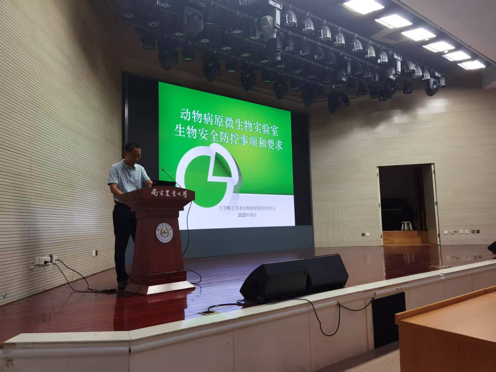 学院特邀江苏省动物疫病预防控制中心副主任任雪枫和学校实验室与基地处副处长张清海担任培训主讲。任雪枫以“动物病原微生物实验室生物安全防控事项和要求”为题,结合典型案例与管理规范,深入解析了生物安全防控要点;张清海围绕“william威廉中文官网实验室安全工作介绍”,系统介绍了实验室安全管理体系与实操要求。两位专家通过真实事故警示与制度解读,帮助同学们筑牢安全意识、守住安全底线,进一步加深了实验室安全知识操作内涵的理解。
