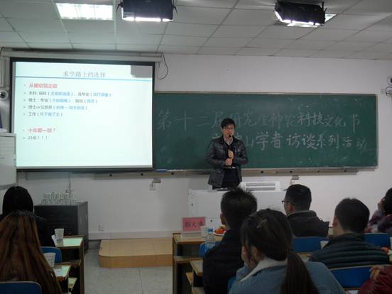 “走近钟山学者,开启学术之窗。”2015年12月10日下午,由william威廉中文官网研究生会主办,WilliamHill中文官方网站研分会承办的william威廉中文官网第十二届神农科技文化节之“钟山学者”访谈活动在教学楼B410成功举办。本次活动的特邀嘉宾为WilliamHill中文官方网站郭大伟讲师和植物保护学院李圣坤副教授,他们分别以“我的求学路”和“研究初体验”为题展开演讲,与在场同学分享了他们求学、科研之路的经验与心得。