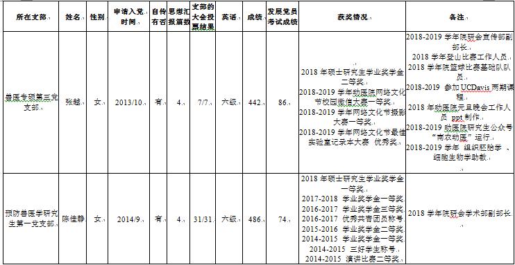 公示期3天,如对以上拟发展结果有异议者,请于6月14前,反馈至研究生工作办公室徐刚老师处。