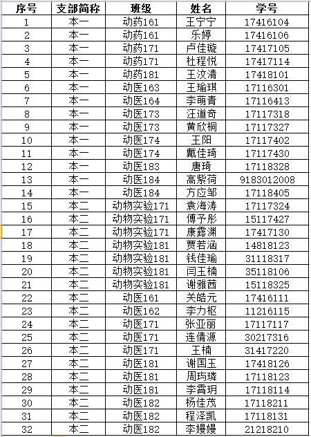 经个人申请、材料审核、支部讨论,现决定将如下本科生推优为积极分子,具体名单如下: