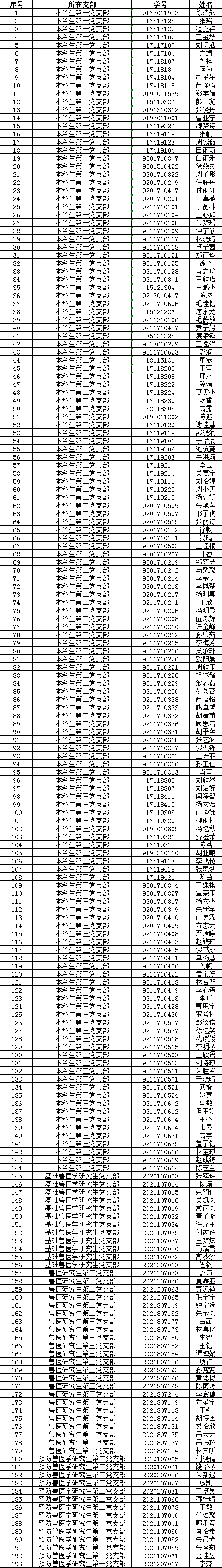 根据WilliamHill中文官方网站党员发展工作安排,经由学生自愿申请,各团支部推荐,党支部讨论,结合初级党建班期间个人表现、结业考试成绩等综合情况,经学院党委审核,接收徐浩然等193名本科生和研究生成为入党积极分子,现将名单公示如下: