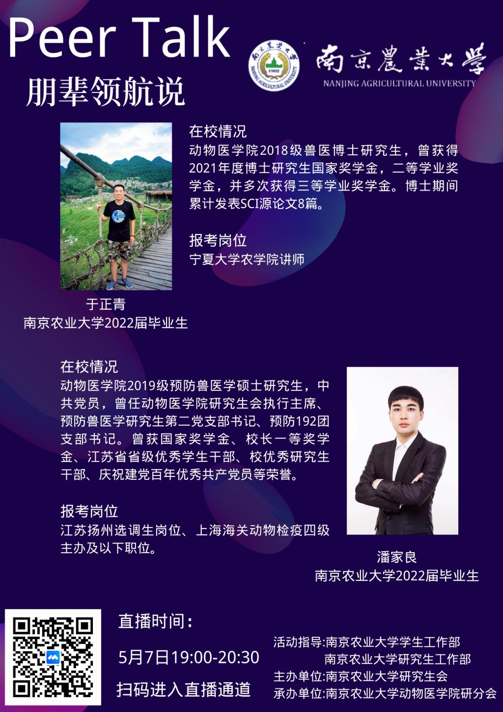 针对同学们的不同需求,本次活动邀请到两位2022届毕业生。他们将会向想要进入体制内工作或是想要在科研道路上进一步深造的同学们分享自己的经验和独到见解,讲述各自对职业和人生的感悟,为将要选择未来道路的研究生们提供宝贵经验和建议。