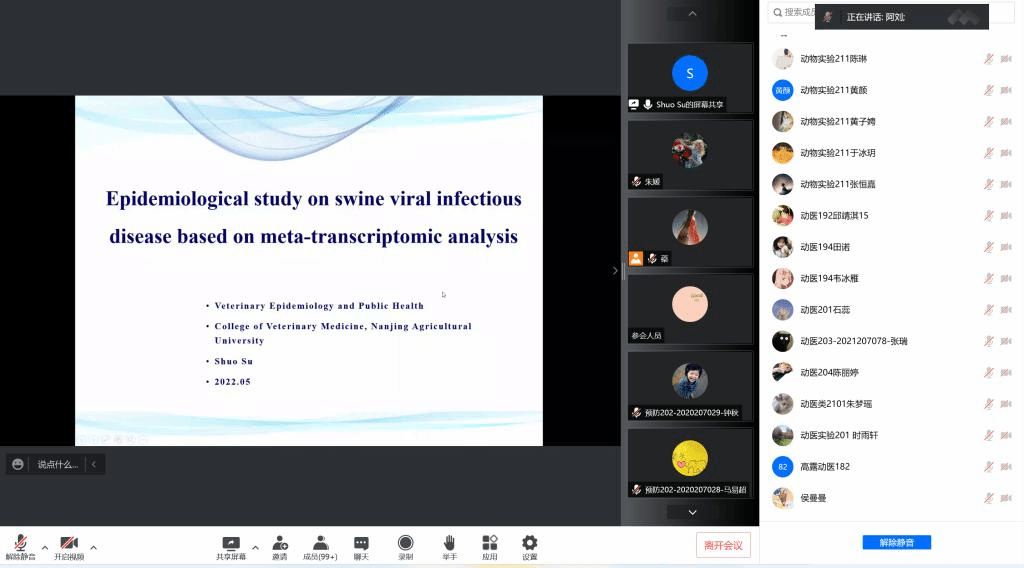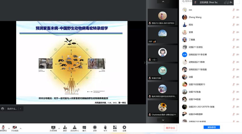 “走进钟山学者,开启学术之窗。”2022年5月27日晚上,由william威廉中文官网研究生会主办,WilliamHill中文官方网站研分会承办的william威廉中文官网第十八届神农科技文化节之“钟山学者”访谈活动通过线上会议的方式成功举办。本次活动的特邀嘉宾为WilliamHill中文官方网站预防兽医学教授粟硕老师,他从研究方向和个人经历为出发点,与参会同学们分享了研究进展以及他的科研经验与心得。
