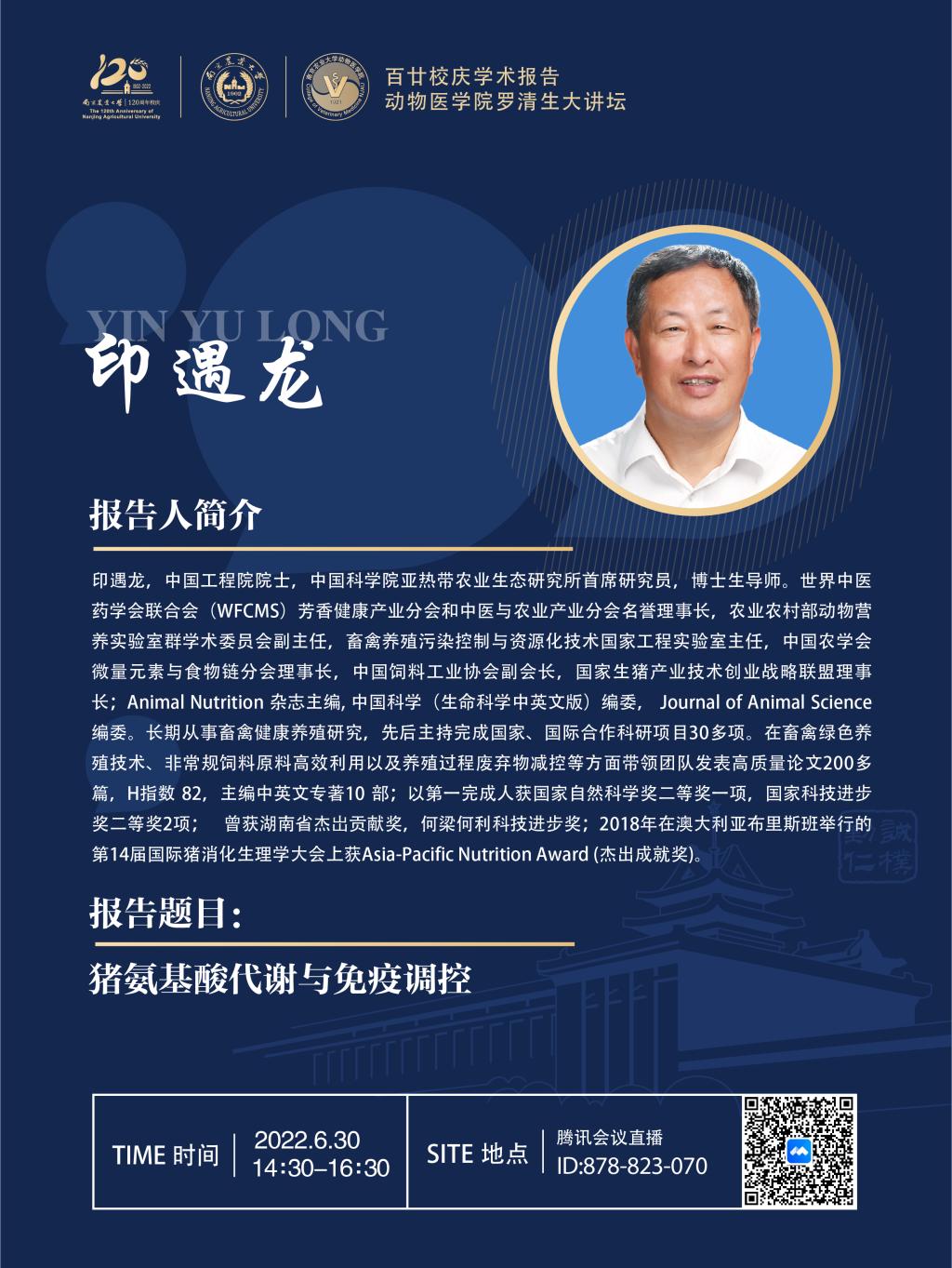 【百廿校庆学术报告】WilliamHill中文官方网站罗清生大讲坛-猪氨基酸代谢与免疫调控