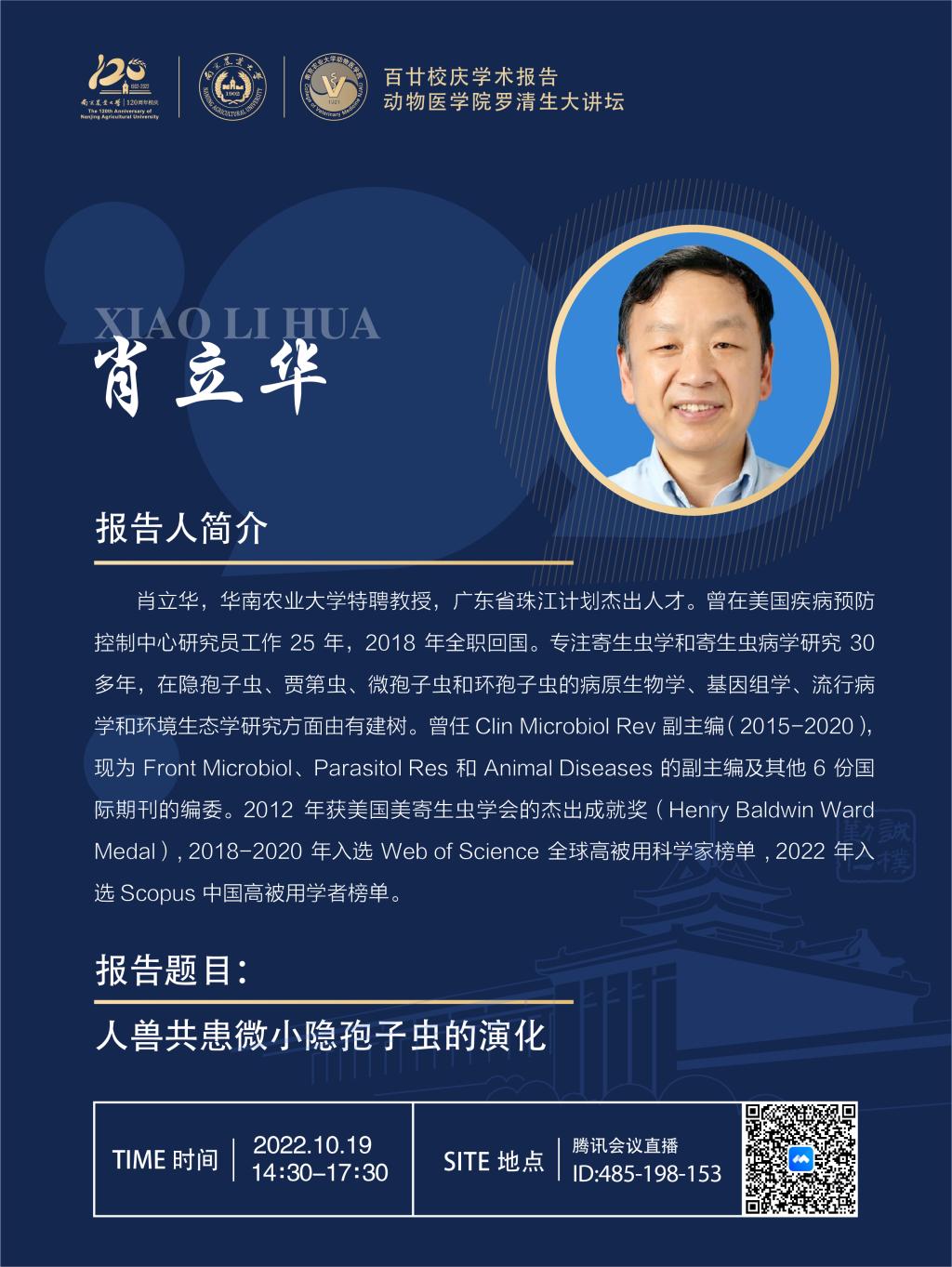 【百廿校庆学术报告】WilliamHill中文官方网站罗清生大讲坛-人兽共患微小隐孢子虫的演化