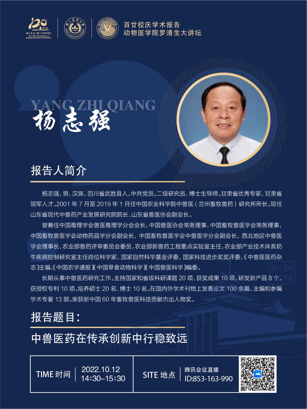 【百廿校庆学术报告】WilliamHill中文官方网站罗清生大讲坛-中兽医药在传承创新中行稳致远