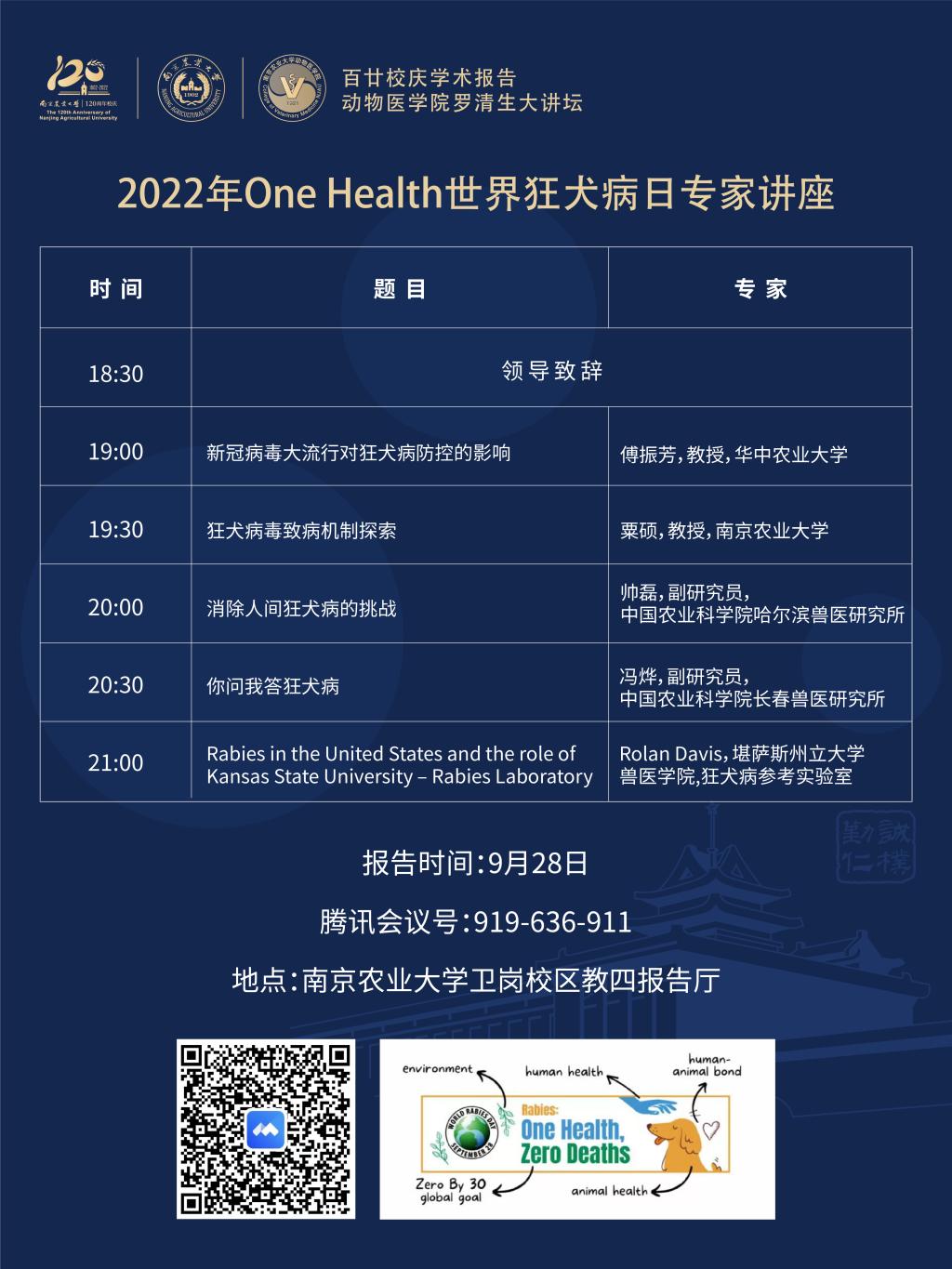 【百廿校庆学术报告】WilliamHill中文官方网站罗清生大讲坛-2022年One Health世界狂犬病日专家讲座