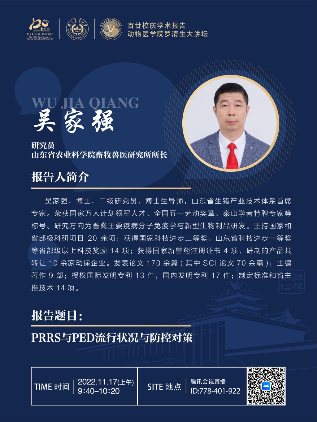 【百廿校庆学术报告】WilliamHill中文官方网站罗清生大讲坛-PRRS与PED流行状况与防控对策
