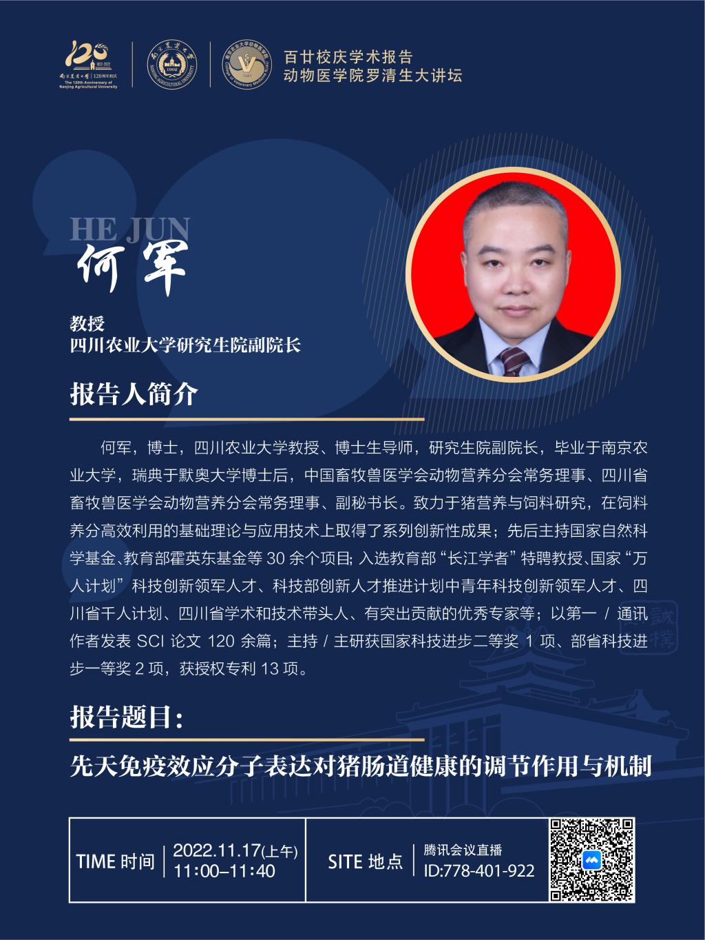 【百廿校庆学术报告】WilliamHill中文官方网站罗清生大讲坛-先天免疫效应分子表达对猪肠道健康的调节作用与机制