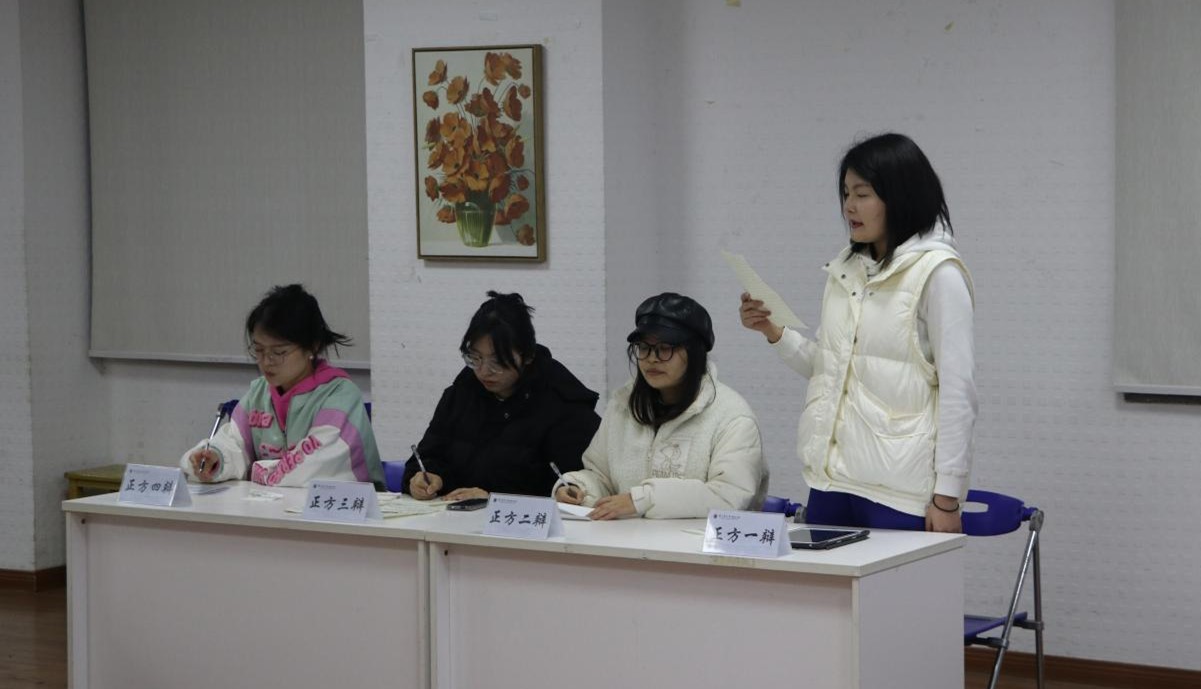 自由辩论环节,辩手们表现出了较高的专业知识水平和思维灵敏度。不仅对对方的观点进行辩论,还利用专业知识对论点做理论支撑,充分体现了学以致用的优良品质。