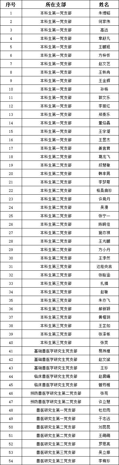 根据WilliamHill中文官方网站党员发展工作安排,经由学生自愿申请,各团支部推荐,党支部讨论,结合初级党建班期间个人表现、结业考试成绩等综合情况,经学院党委审核,接收朱博韬等54名本科生和研究生成为入党积极分子,现将名单公示如下: