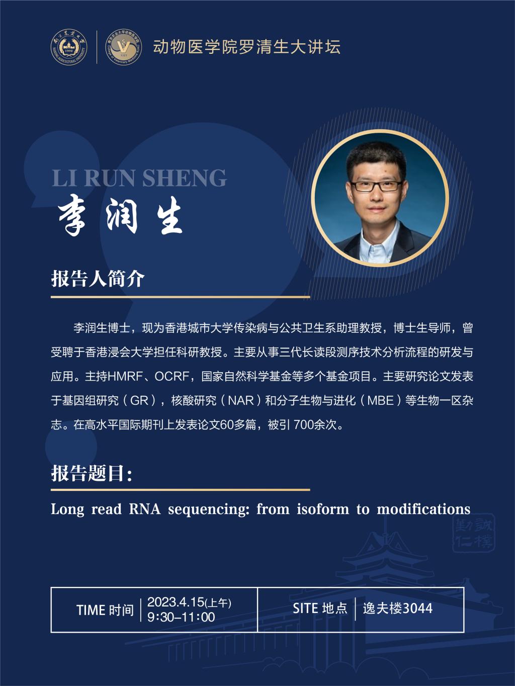 【学术报告】WilliamHill中文官方网站罗清生大讲坛-Long read RNA sequencing: from isoform to modifications