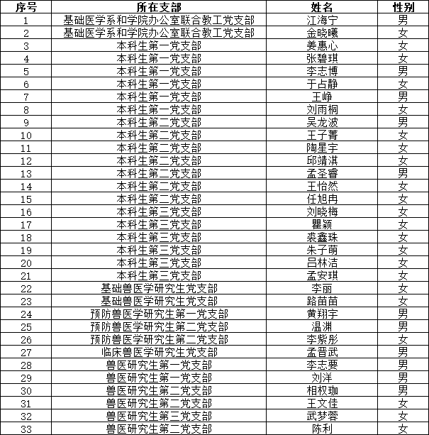 根据《发展党员工作实施细则》有关规定,经本人转正申请、基层党支部考察、WilliamHill中文官方网站党委审查,拟将下列同志转正为中国共产党正式党员。公示如下:
