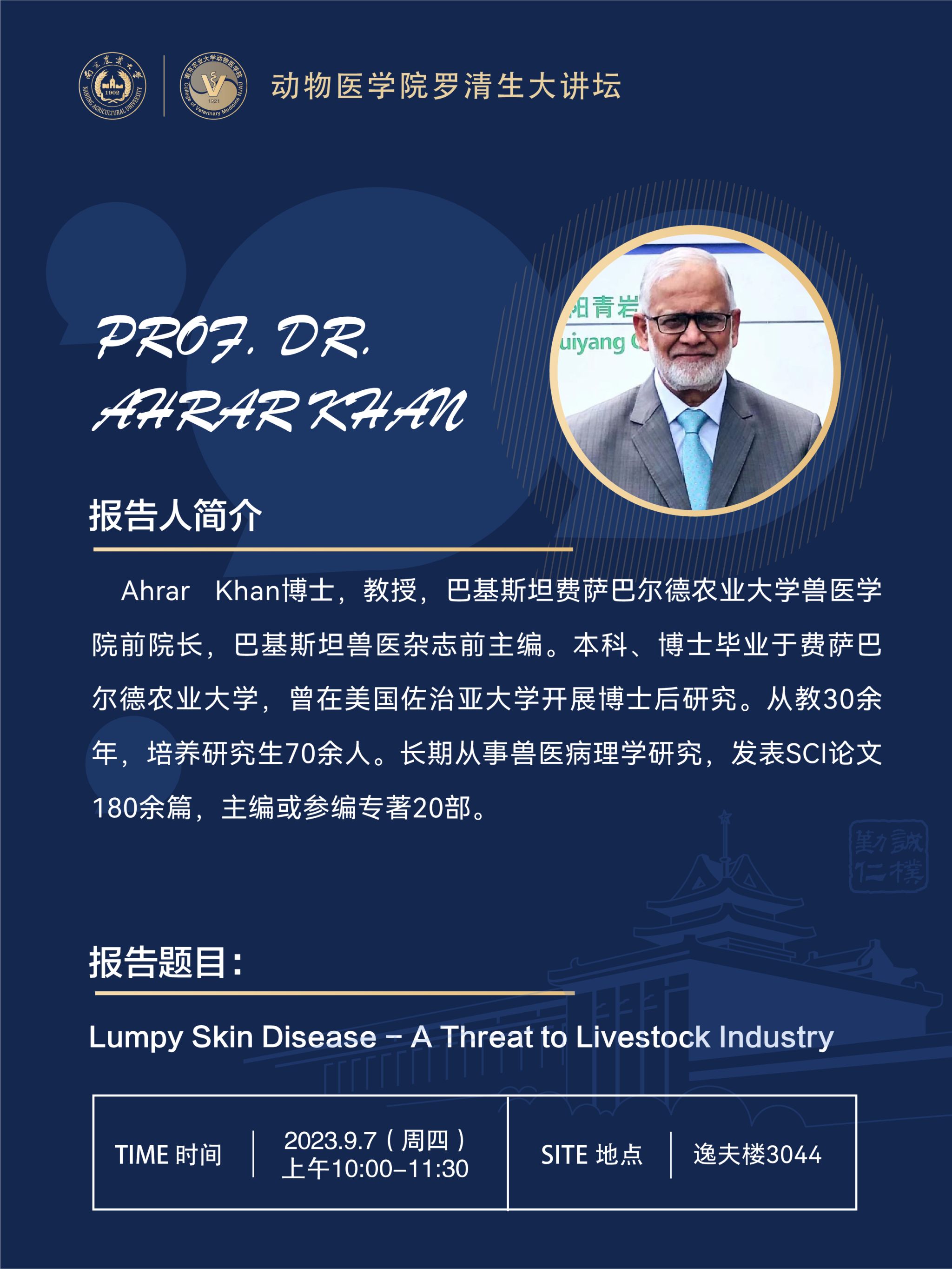 【学术报告】WilliamHill中文官方网站罗清生大讲坛-Lumpy Skin Disease - A Threat to Livestock Industry
