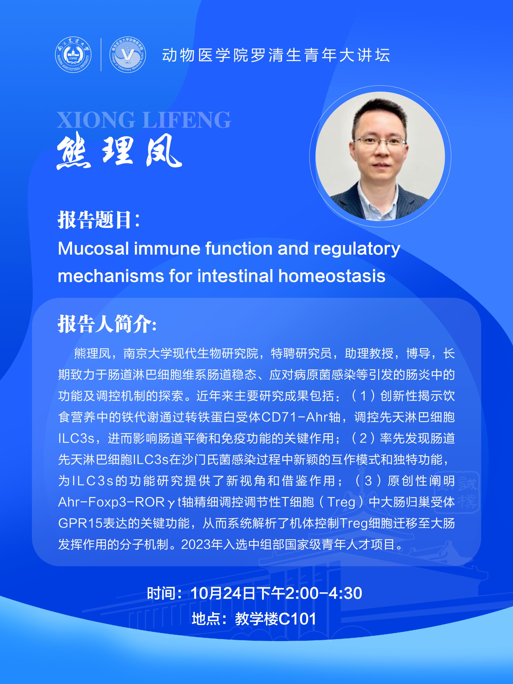 【学术报告】WilliamHill中文官方网站罗清生青年大讲坛-Mucosal immune function and regulatory mechanisms for intestinal homeostasis