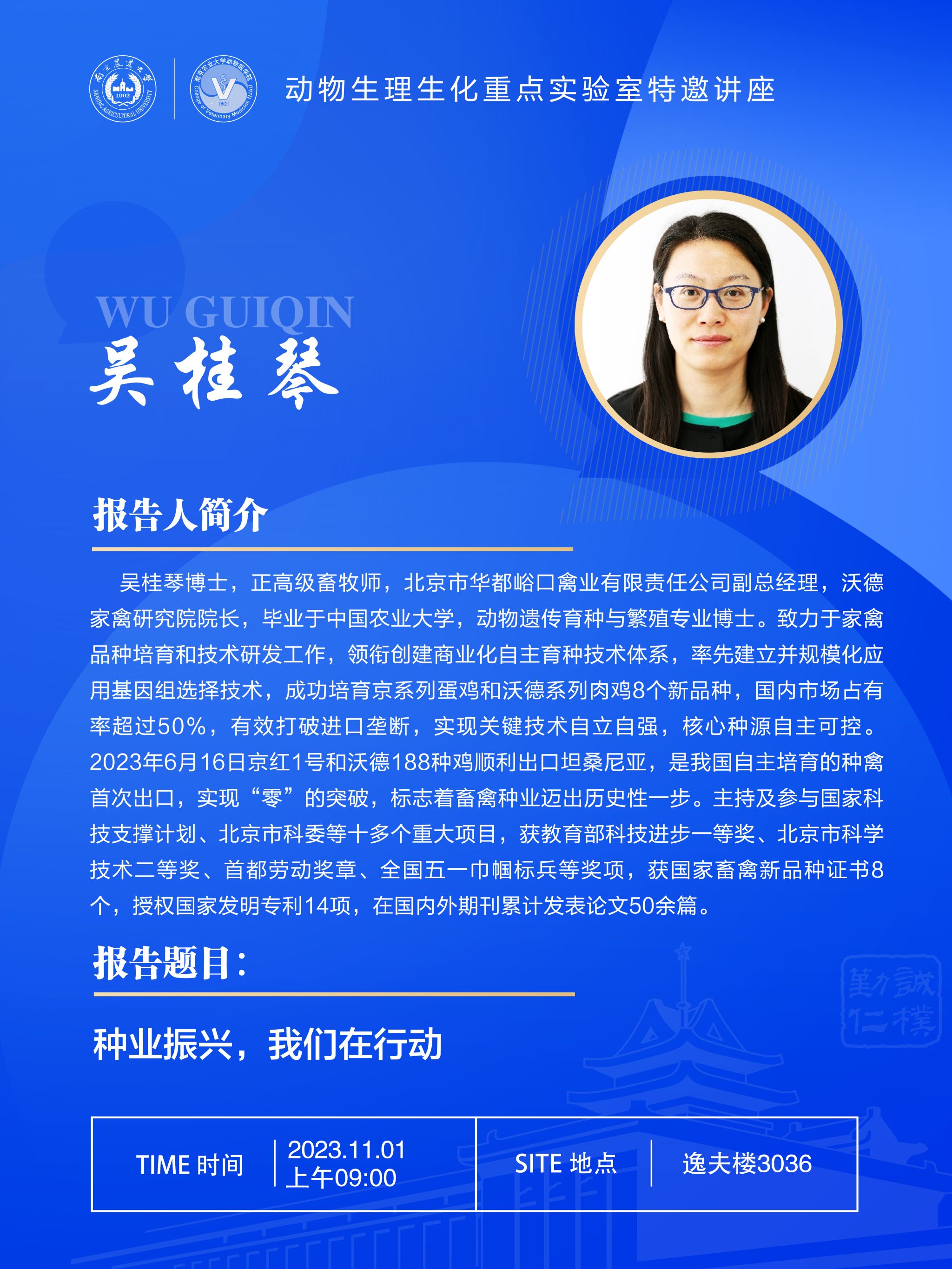 【学术报告】动物生理生化重点实验室特邀讲座:种业振兴,我们在行动