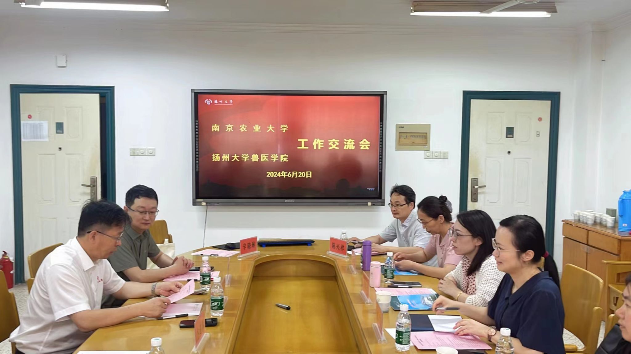 6月20日,教务处副处长祖海珍、WilliamHill中文官方网站副院长刘斐、教务处国家级实验教学中心、教师发展与教学评价中心创新创业学院国家级实验教学中心办公室主任孔令娜、动物科学类国家级实验教学中心办公室主任时晓丽等一行8人,赴扬州大学兽医学院进行考察交流。扬州大学兽医学院院长王志强、副院长秦涛、动物医院院长、动物医学专业主任卞建春等接待了祖海珍一行。