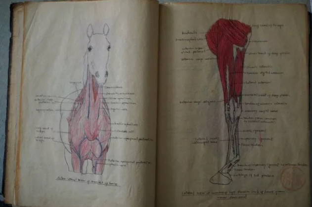 进入大学后的祝老先生,十分刻苦。由于当时条件有限,国内畜牧兽医有关的书籍相对贫乏,很多都是从英美等国直接拿来的原文书籍,当时的他只能和蔡宝祥老先生等人自己翻译并学习。大学二年级的时候,在缺乏学习资料的情况下,祝老先生还利用自己的课余时间,用四川特色的薄竹纸,纯手工描绘出马、牛、猪等动物的系统解剖图。采访中,我们有幸看到了祝老先生当年的手绘图册,每一笔每一划每一个注解都体现了祝老先生的认真、严谨的学习态度,这种精神在当今,这个充斥着电子设备的时代显的尤为可贵。