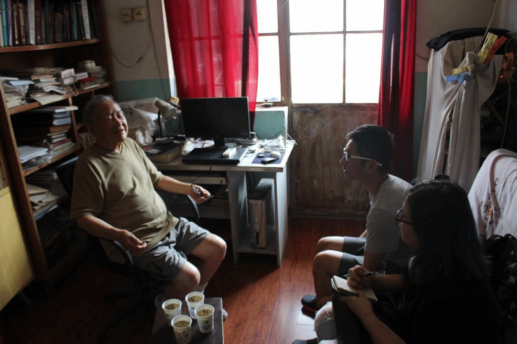 一些旧书的边缘粉落,想必是往日里,老先生时常翻阅,爱不释手。我们在沙发上落座,面前的茶几上茶香氤氲,与书香混为一体,跨越时代的采访就在此间铺展开来。