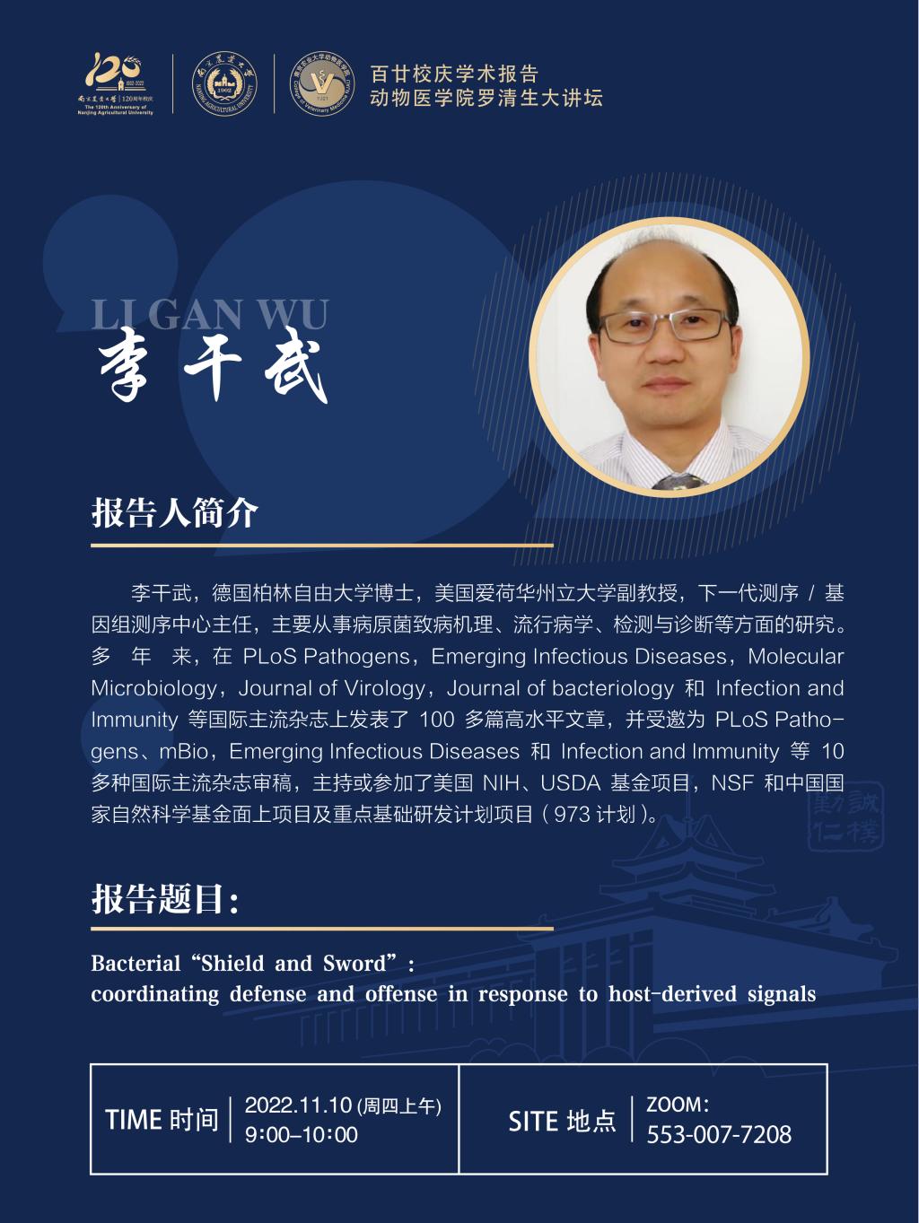 【百廿校庆学术报告】WilliamHill中文官方网站罗清生大讲坛-Bacterial“Shield and Sword”:coordinating defense and offense in response to host-derived signals