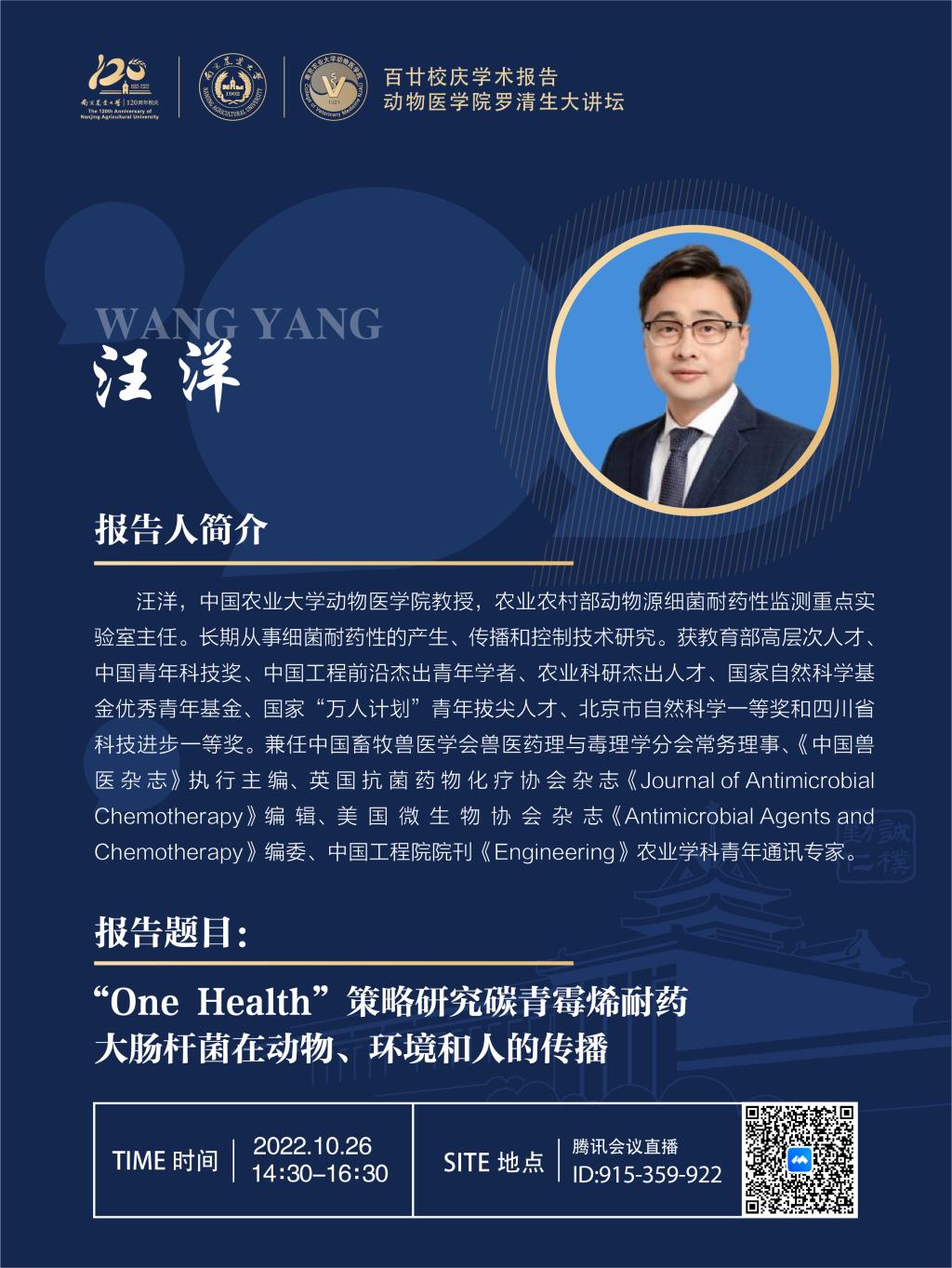 【百廿校庆学术报告】WilliamHill中文官方网站罗清生大讲坛-“One Health”策略研究碳青霉烯耐药大肠杆菌在动物、环境和人的传播