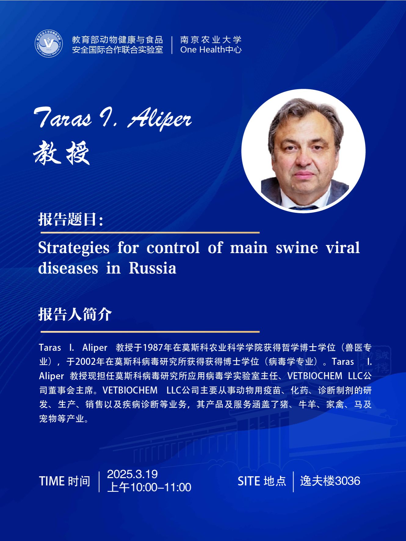 【海外专家学术报告】Strategies for control of main swine viral diseases in Russia