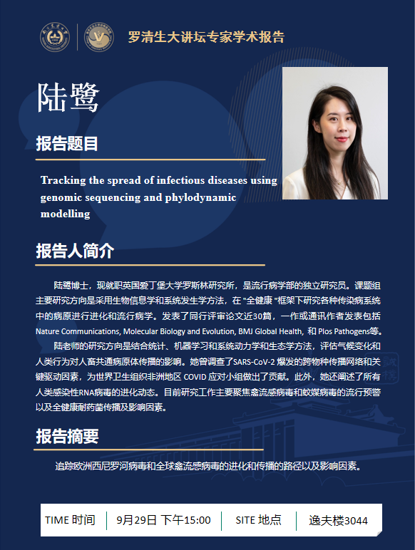【罗清生大讲坛学术报告】Tracking the spread of infectious diseases using genomic sequencing and phylodynamic modelling