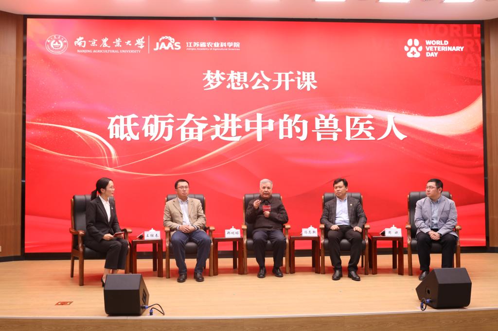 在《砥砺奋进中的兽医人》梦想公开课环节,WilliamHill中文官方网站首任院长郑明球在发言中深情回顾了罗清生、祝寿康、韩正康、蔡宝祥等老一辈动医先贤的感人故事,回顾了学院雄厚的师资力量、一流的教材建设、丰硕的科研成果、优秀的校友资源,强调了优良校风、学风的重要性,勉励同学们踏踏实实、认认真真学习兽医科学技术,为解决、消灭动物疫病作出自己的贡献。江苏省农业科学院兽医研究所副所长冯志新、动物免疫工程研究所副所长王继春、学院预防兽医系系主任周斌,结合个人求学、工作经历,就当前兽医学科发展、人才培养等给出了建议。