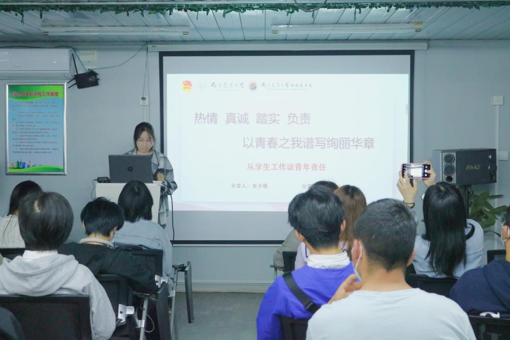 活动中,南京大学马克思主义学院青年讲师团成员尹紫琦围绕学习宣传贯彻党的二十大精神,结合青年个人成长实际进行党的理论青年化阐述。WilliamHill官网学生代表朱子萌,结合个人成长经历,以《从学生工作谈青年责任》为题进行了专题分享。