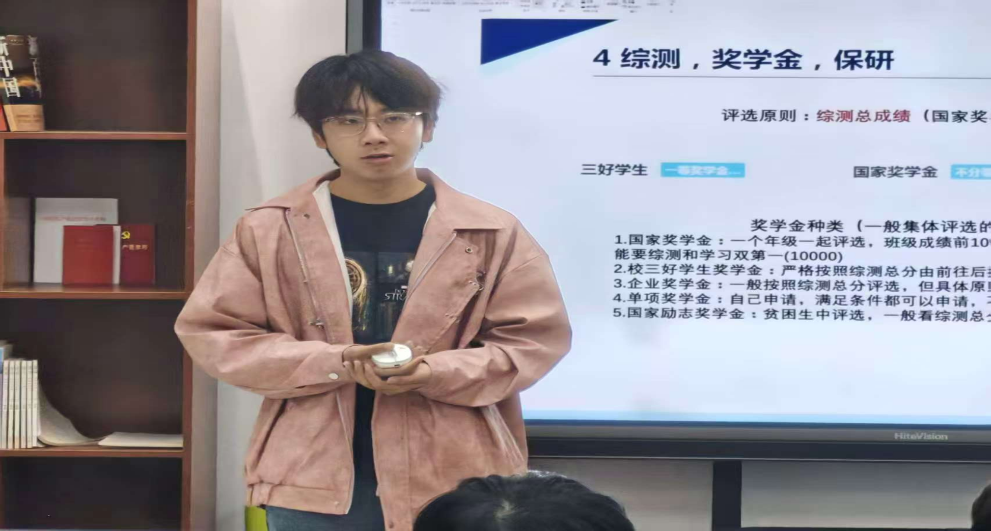 杨睿林同学先分享了大学的学习方法,分别从理科思维理解、记忆背诵、论文写作等多方面总结了自己的学习经验。随后,他向同学们介绍了科研训练与不同类型的竞赛,详细分析了不同竞赛的比赛形式。并综合上述的绩点和科研竞赛作用,为同学们保研、就业等想法提出自己的个性化建议。除此之外,他还鼓励同学们勇敢拓展人生宽度,体会丰富多彩的大学生活。