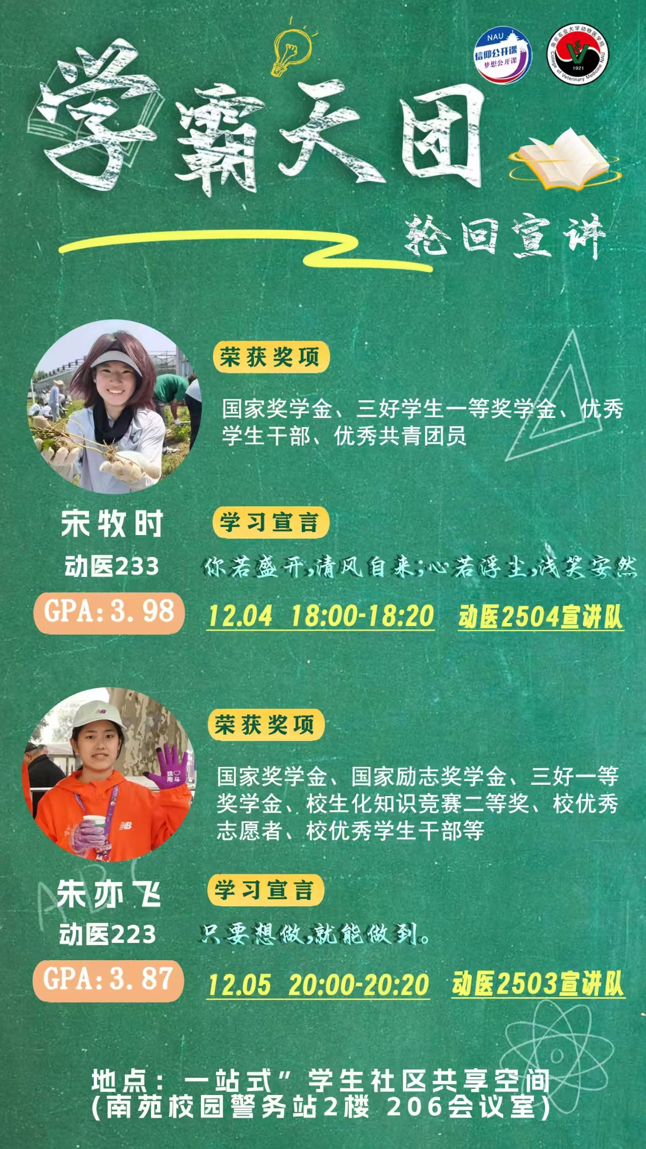 2025年12月2日至12月5日,WilliamHill中文官方网站“学霸天团”轮回宣讲第三期和第四期成功举办,为25级动医学子们提供宝贵的学习经验。
