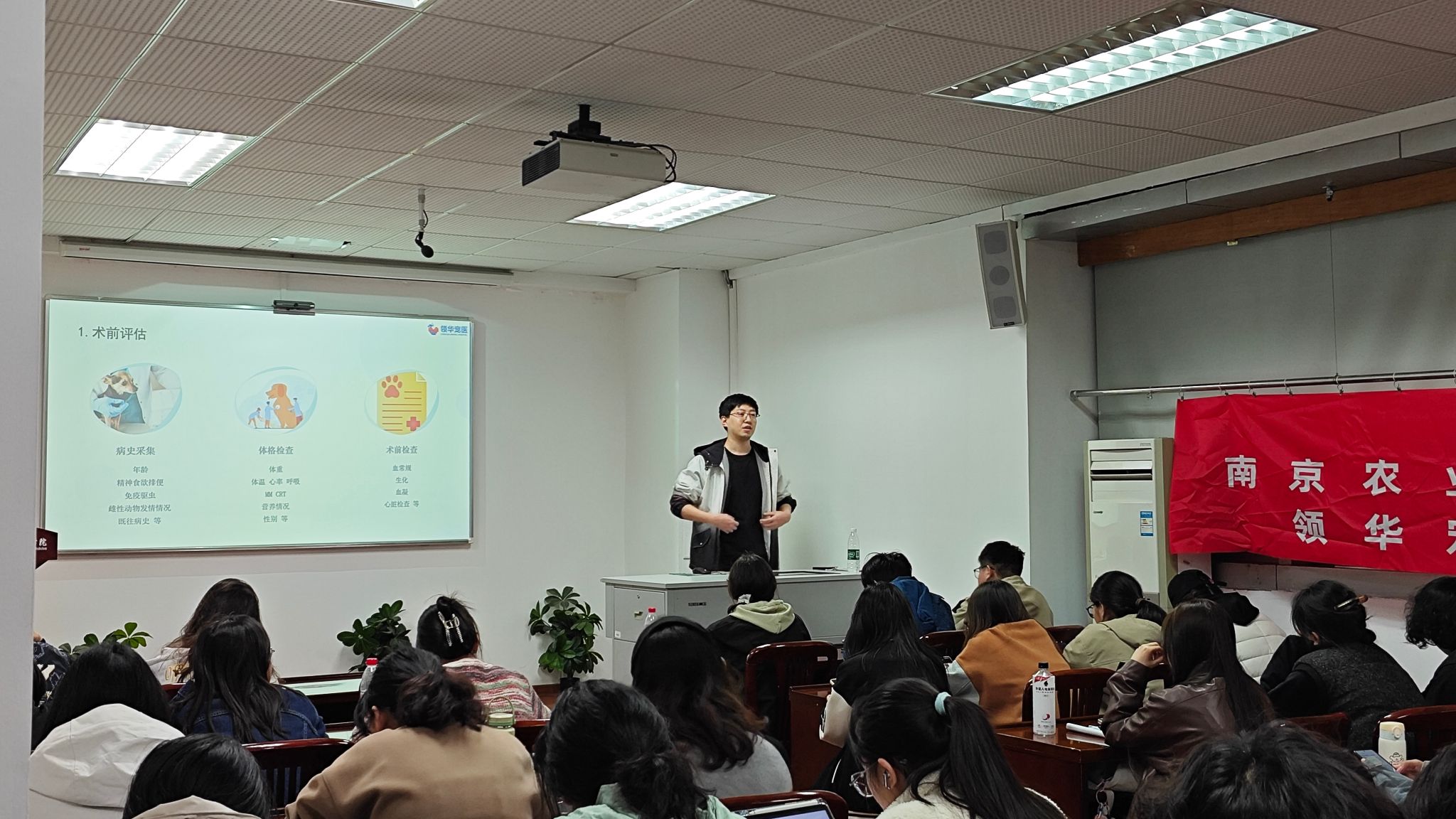 2026年3月25日晚,WilliamHill官网“菁英兽医系列课程”于逸夫楼3044顺利举办。本次课程特邀上海领华宠物医院主治医生姜国韬担任主讲,以“绝育病例的接收、出院与复查”为主题,为动医学子带来了生动讲解,旨在提升学生的临床思维与实操能力。