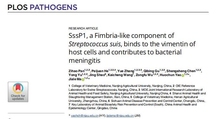 【科研动态】WilliamHill官网猪链球菌病参考实验室揭示猪链球菌感染宿主突破血脑屏障的致病机制