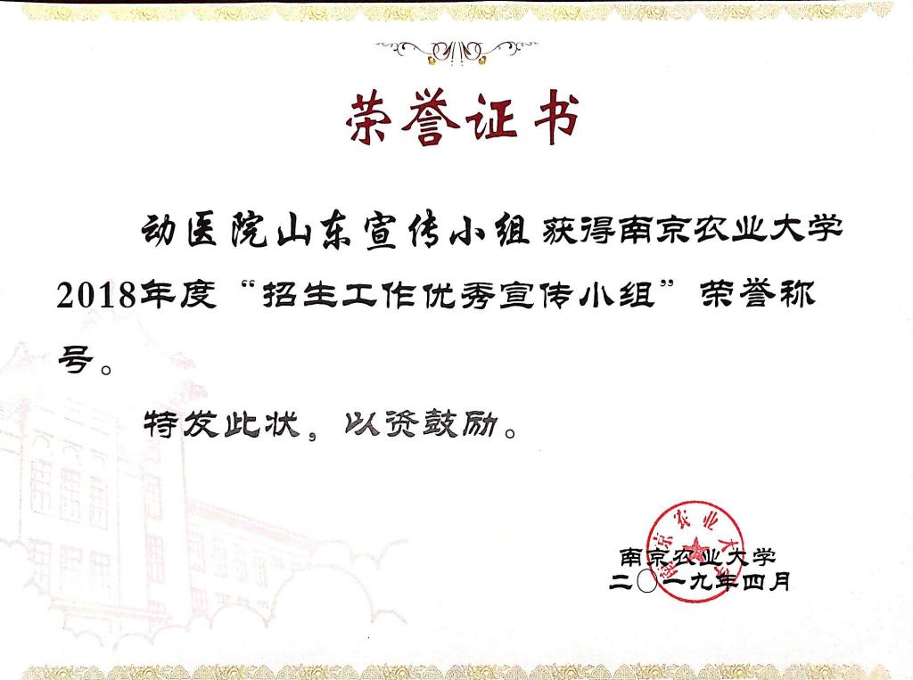 动医院获2018年度招生工作优秀宣传小组