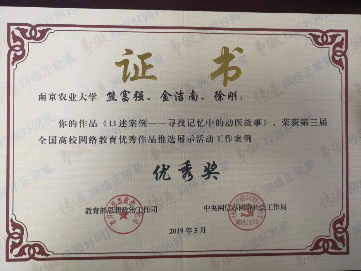 2019年熊富强、金洁南、徐刚老师作品获“第三届全国优秀工作案例”
