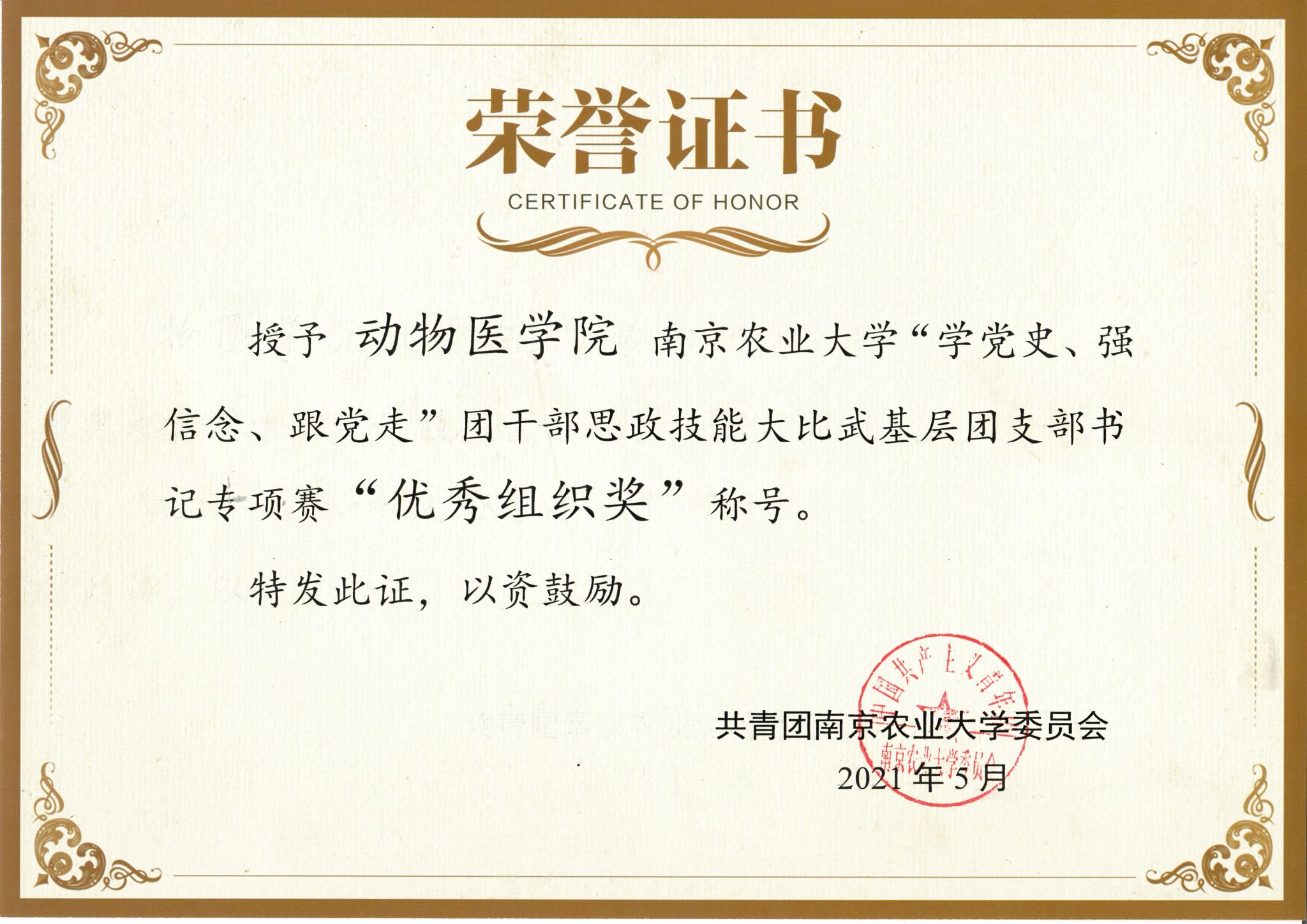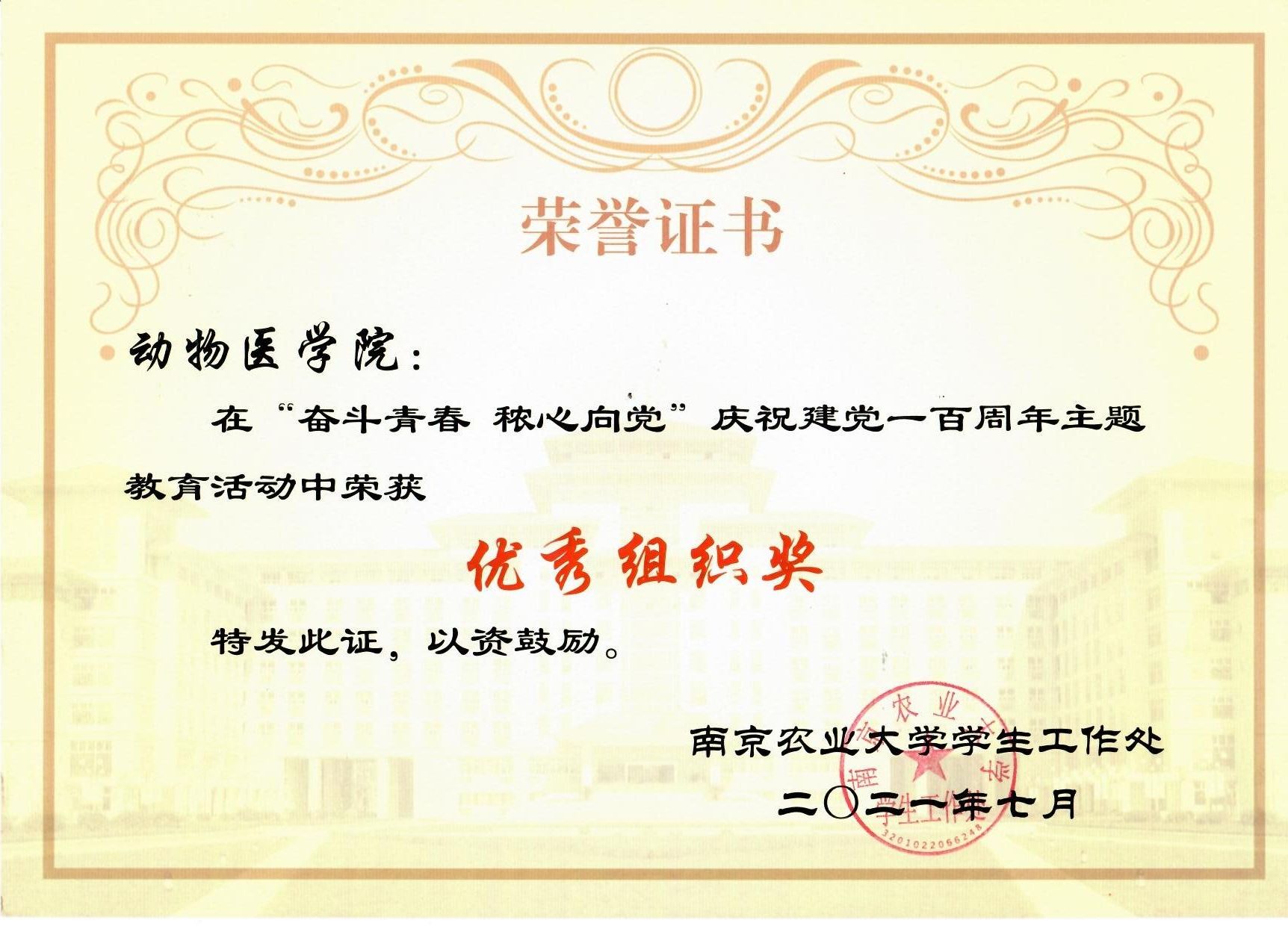 2021年“奋斗青春 秾心向党”庆祝建党一百周年主题教育活动优秀组织奖