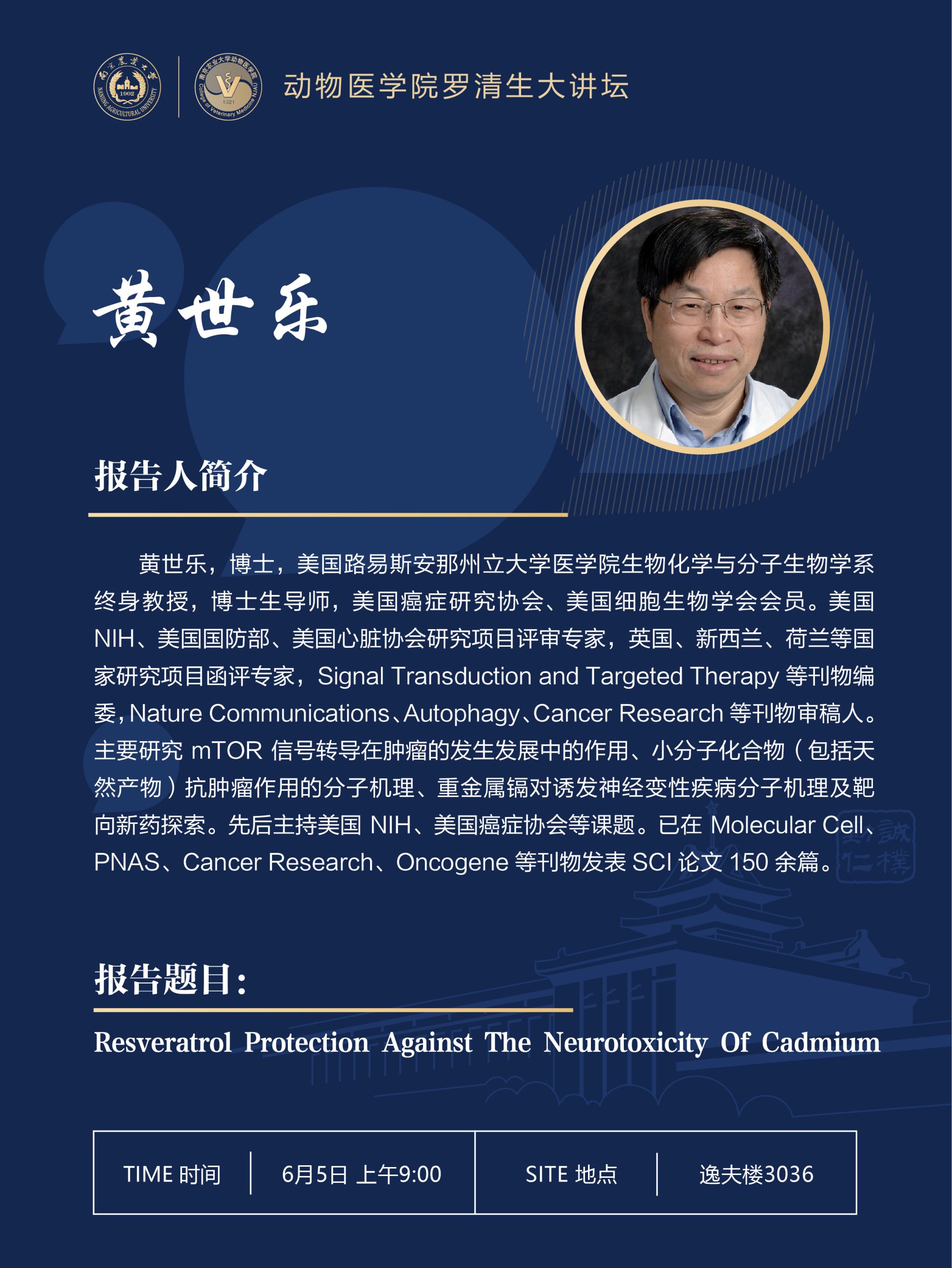 【罗清生大讲坛海外专家学术报告】Resveratrol protection against the neurotoxicity of cadmium