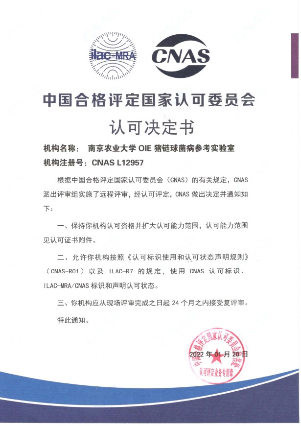 william威廉中文官网OIE猪链球菌病参考实验室通过CNAS复评审与扩项认可